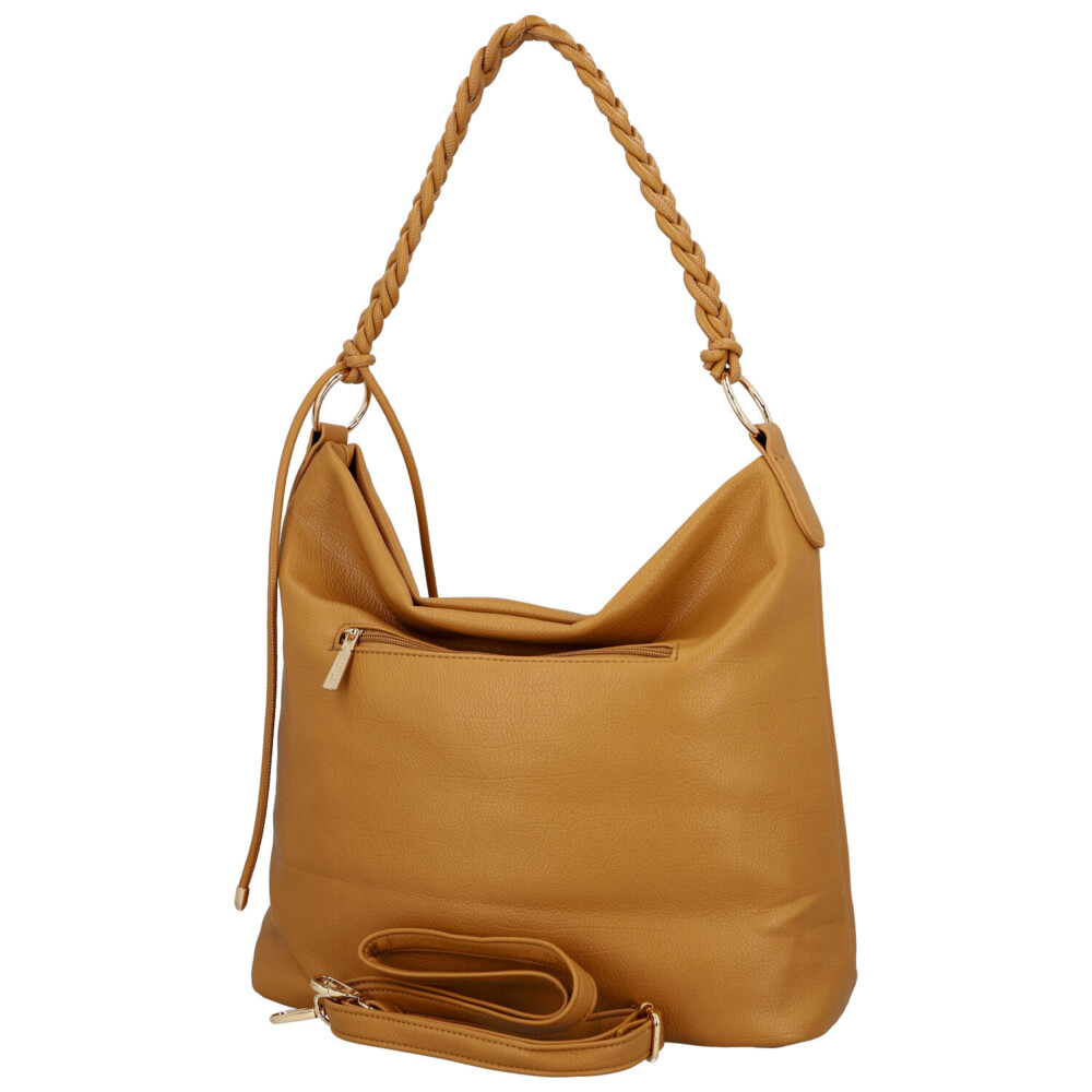 Elegantní kabelka na rameno z koženky zaujme čistým designem a stylovými detaily, které z ní dělají perfektní doplněk pro každý den. Dominantou modelu je ozdobné ucho na rameno spletené do copánku, které kabelce dodává originální a módní vzhled. Přední stranu jemně zdobí logo značky, zatímco zlaté kování podtrhuje její elegantní charakter. Hlavní kapsa se zapínáním na zip ukrývá praktický prostor s kapsičkami v podšívce pro přehledné uložení všech nezbytností. Na zadní straně nechybí další zipová kapsa. Součástí je také dlouhý nastavitelný popruh na připnutí, díky kterému můžete kabelku nosit i pohodlně přes rameno nebo jako crossbody. Stylový a univerzální kousek, který skvěle doplní elegantní i ležérní outfit. Objednejte ještě dnes a vyzkoušejte, vrátit ji můžete až do 30 dnů!