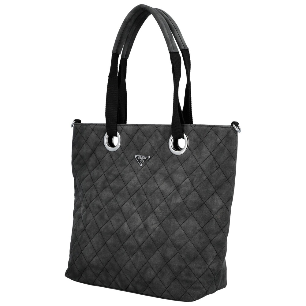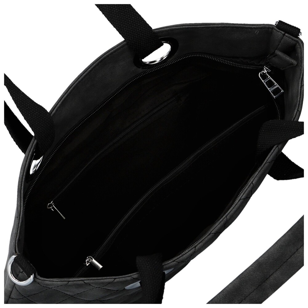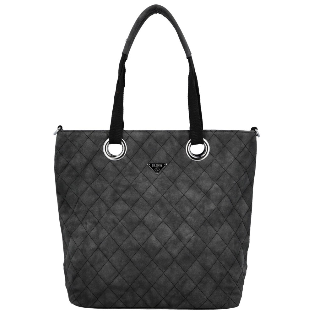 Stylová a prostorná, tato velká koženková kabelka na rameno zaujme na první pohled svým designovým prošitím do tvarů kosočtverců. Přední stranu zdobí logo značky a stříbrné kovové kroužky, kterými jsou uchycena kombinovaná textilní a koženková ucha, dodávající kabelce moderní charakter. Hlavní kapsa na zip nabízí dostatek prostoru, uvnitř najdete menší kapsičky v podšívce a středovou zipovou kapsu pro lepší organizaci. Zadní zipová kapsa poskytuje praktický úložný prostor. Textilní popruh na připnutí a stříbrné kování dokončují elegantní a zároveň funkční design, který se hodí ke každodenním i pracovním outfitům. Objednejte ještě dnes a vyzkoušejte, vrátit ji můžete až do 30 dnů!