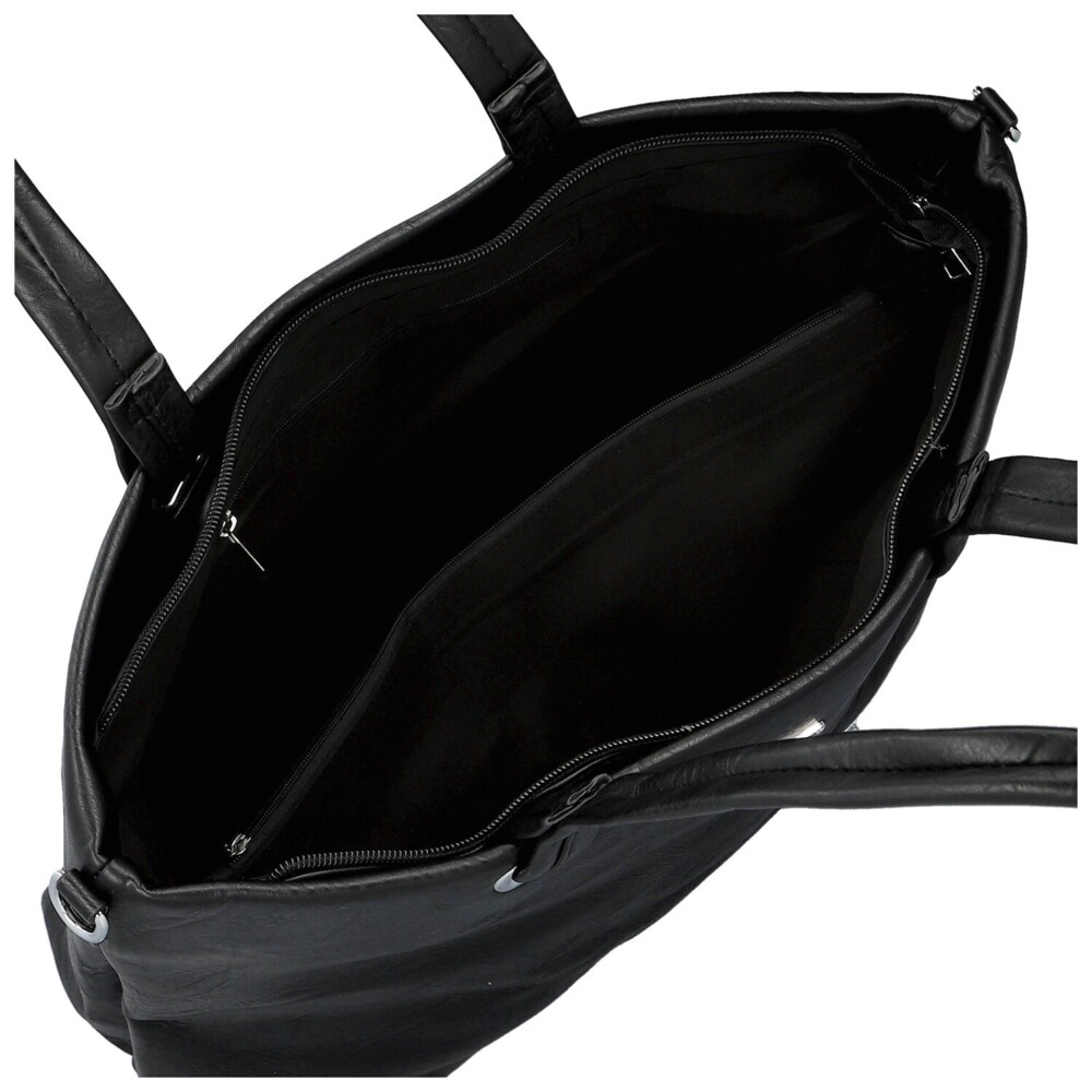 Tahle dámská koženková kabelka je důkazem, že jednoduchost může být nejsilnějším stylem. Hladký povrch působí elegantně a nadčasově, zatímco na přední straně jemně září stříbrné logo. Dlouhá ucha jsou navržená tak, aby pohodlně seděla na rameni i při celodenním nošení. Po rozepnutí hlavního zipu se otevře promyšleně členěný interiér s podšívkou, nechybí menší kapsičky na drobnosti ani středová přihrádka, která udržuje věci perfektně uspořádané. Na zadní straně najdete další zipovou kapsu. A když budete chtít mít volné ruce, jednoduše připnete dlouhý popruh a přeměníte kabelku na pohodlnou crossbody variantu. Stříbrné kování krásně doplňuje její moderní vzhled a dodává jí jemný, sofistikovaný třpyt. Objednejte ještě dnes a vyzkoušejte, vrátit ji můžete až do 30 dnů!