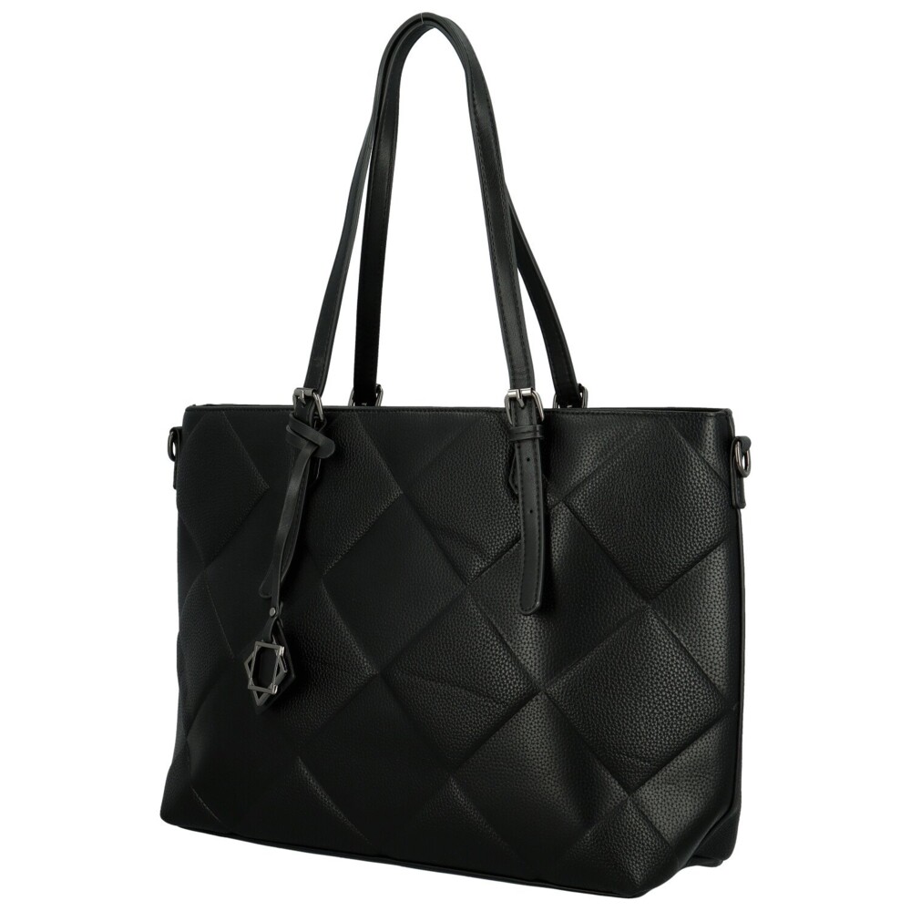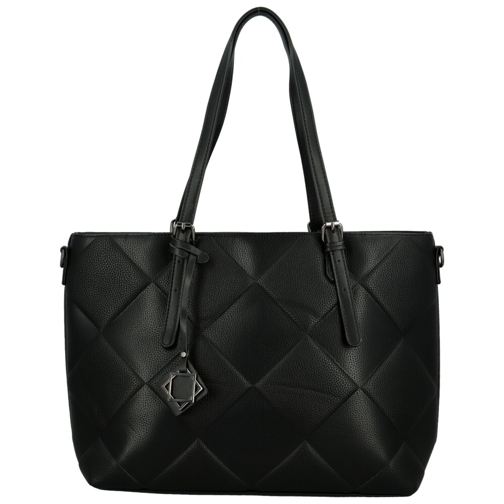 Tahle větší koženková kabelka je stvořená pro ženy, které chtějí mít styl a zároveň dostatek prostoru pro všechny své věci. Přední stranu zdobí originální detail, jemně vytlačený čtvercový vzor, který působí decentně, ale přitom jedinečně. Eleganci doplňuje designový přívěsek, jenž kabelce dodává šmrnc. Dlouhé uši jsou vybavené přezkami v tmavě stříbrné barvě, takže si jejich délku snadno přizpůsobíte. Zadní část nabízí praktickou zipovou kapsu na drobnosti. Hlavní prostor se uzavírá zipem a ukrývá kapsičky v podšívce i středovou zipovou kapsu pro lepší přehled. A když se vám zachce volnosti, stačí připnout nastavitelný dlouhý popruh a kabelku pohodlně nosit i crossbody. Jeden kousek, spousta možností. Objednejte ještě dnes a vyzkoušejte, vrátit ji můžete až do 30 dnů!