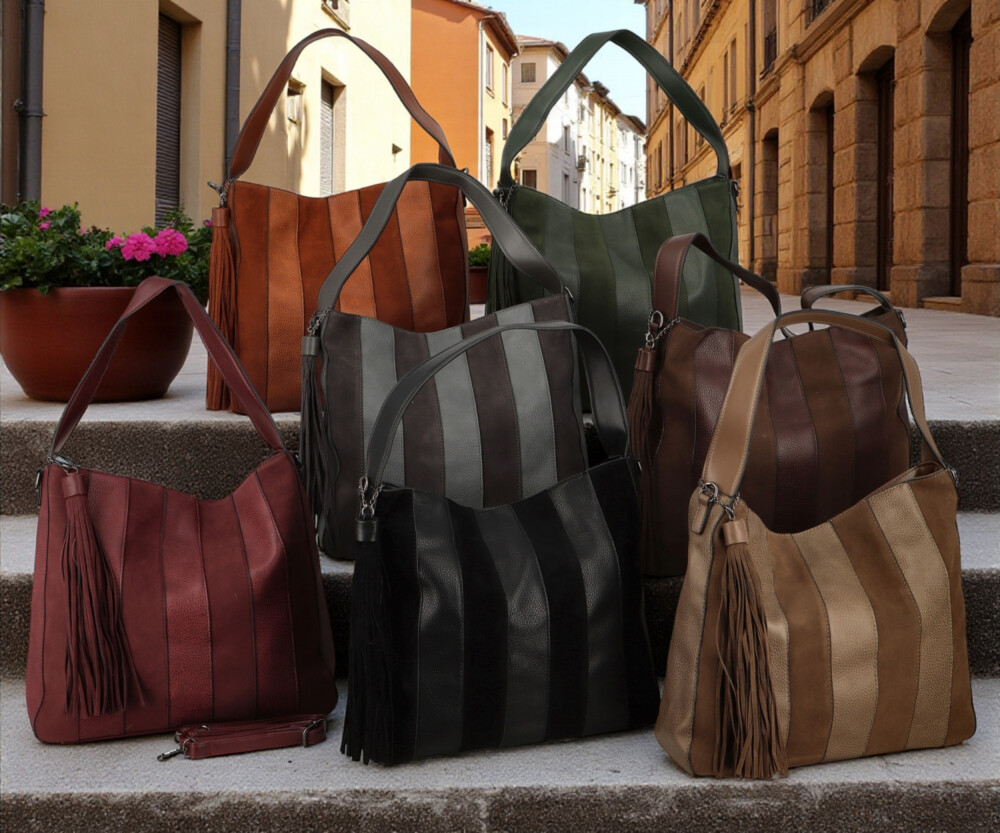 Stylová dámská kabelka, která v sobě spojuje eleganci i praktičnost. Přední strana je ozdobena svislými pruhy ve dvou odstínech, což jí dodává moderní a zajímavý vzhled. Na pevném uchu je zavěšený výrazný střapec, který působí jako originální detail. Hlavní prostor kabelky je uzavíratelný zipem a uvnitř nabízí kapsičky v podšívce a praktickou středovou zipovou kapsu. Zadní část doplňuje zipová kapsa na drobnosti. Kabelku lze nosit jak v ruce nebo na rameni, tak i pohodlně přes tělo díky přídavnému dlouhému popruhu. Objednejte ještě dnes a vyzkoušejte, vrátit ji můžete až do 30 dnů!