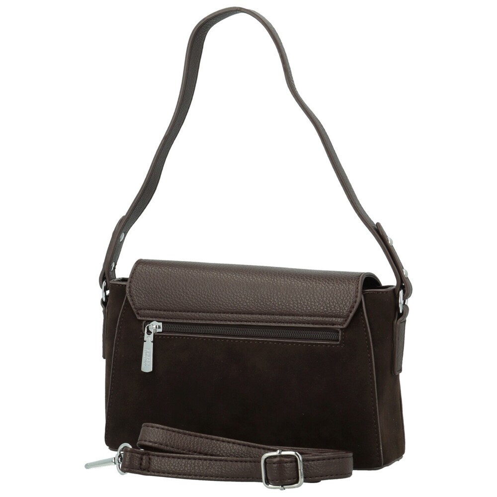 Stylová koženková kabelka na rameno, která zaujme kombinací materiálů a elegantním střihem. Přední klopa z klasické koženky s logem značky ve stříbrné barvě vytváří moderní kontrast k tělu kabelky z jemné semišové koženky. Po otevření najdete praktický prostor na zip a uvnitř menší kapsičky pro uspořádání drobností. Na zadní straně je delší zipová kapsa pro rychlý přístup k věcem. Kabelka disponuje krátkým popruhem, který perfektně padne na rameno, a dlouhý nastavitelným popruhem pro pohodlné nošení do kříže. Ideální společník pro každodenní styl i večerní výlet. Objednejte ještě dnes a vyzkoušejte, vrátit ji můžete až do 30 dnů!