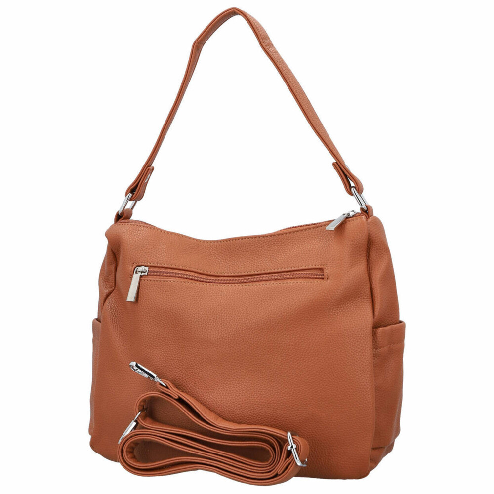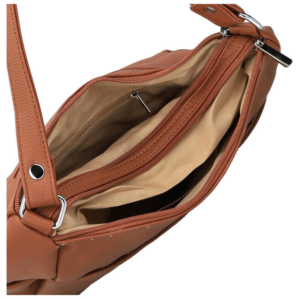 Praktická, stylová a vždy připravená! Tato dámská koženková kabelka na rameno kombinuje jednoduchý design s chytrým uspořádáním - přední dvě otevřené kapsy s jemným prošitím, zadní zipová kapsička a boční kapsy pro rychlý přístup k drobnostem. Hlavní dvě kapsy na zip ukrývají menší kapsičky v podšívce, které udrží vše přehledně uspořádané. Stříbrné kování dodává moderní šmrnc a dlouhý nastavitelný popruh umožní pohodlné nošení na rameni i do kříže. Kabelka, která spojuje funkčnost, eleganci a trendy energii pro každý den! Objednejte ještě dnes a vyzkoušejte, vrátit ji můžete až do 30 dnů!