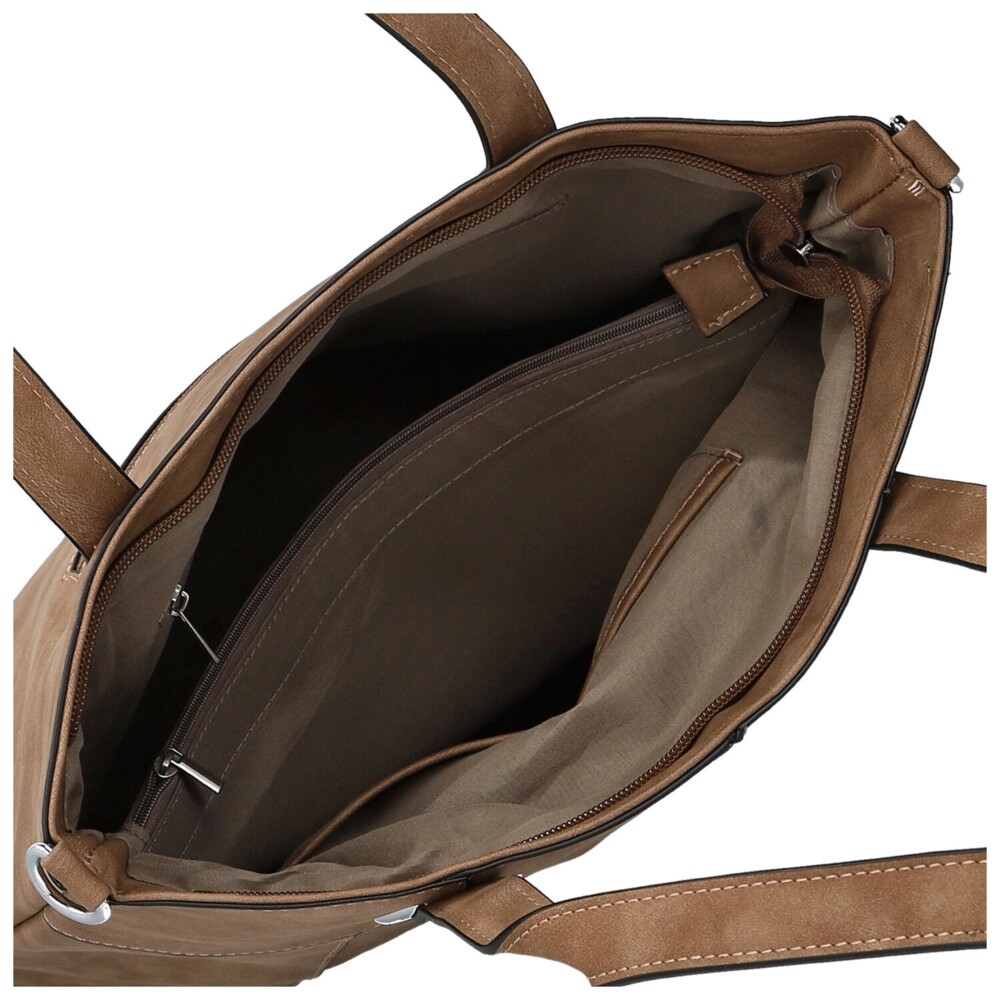 Kabelka přináší moderní kombinaci jednoduchosti a nápaditého designu. Přední strana je pojata jako stylová mozaika - jemné prošití vytváří geometrické linie, které krásně doplňuje výrazné černé lemování. Díky tomu kabelka působí elegantně, zajímavě a přitom stále dokonale čistě. Dlouhá ucha jsou navržená tak, aby kabelka pohodlně seděla na rameni i při delším nošení. K dispozici je i přídavný nastavitelný popruh, který umožní nosit kabelku křížem přes tělo. Stříbrné kování v podobě velkých kovových oček celé provedení jemně zvýrazní. Hlavní kapsa je zajištěná zipem a uvnitř najdete vše, co oceníte při každodenním používáním - kapsičky v podšívce i středovou zipovou kapsu. Praktická zipová kapsa je i na zadní straně. Stylový doplněk, který spojuje eleganci, pohodlí i chytré detaily. Objednejte ještě dnes a vyzkoušejte, vrátit ji můžete až do 30 dnů!