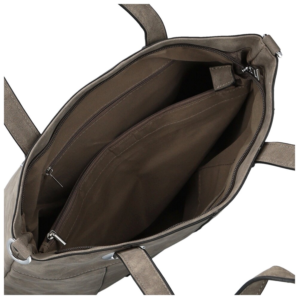 Kabelka přináší moderní kombinaci jednoduchosti a nápaditého designu. Přední strana je pojata jako stylová mozaika - jemné prošití vytváří geometrické linie, které krásně doplňuje výrazné černé lemování. Díky tomu kabelka působí elegantně, zajímavě a přitom stále dokonale čistě. Dlouhá ucha jsou navržená tak, aby kabelka pohodlně seděla na rameni i při delším nošení. K dispozici je i přídavný nastavitelný popruh, který umožní nosit kabelku křížem přes tělo. Stříbrné kování v podobě velkých kovových oček celé provedení jemně zvýrazní. Hlavní kapsa je zajištěná zipem a uvnitř najdete vše, co oceníte při každodenním používáním - kapsičky v podšívce i středovou zipovou kapsu. Praktická zipová kapsa je i na zadní straně. Stylový doplněk, který spojuje eleganci, pohodlí i chytré detaily. Objednejte ještě dnes a vyzkoušejte, vrátit ji můžete až do 30 dnů!