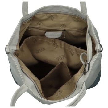 Tento typ kabelek je oblíbený pro svou pohodlnost a praktičnost. Přední stranu doladí kovové logo značky. Kabelka nabízí dostatek místa na všechny vaše věci. Uvnitř se nachází středová zipová kapsa, která vám umožní perfektní rozdělení vašich věcí. Pro drobnější věci poslouží menší boční kapsičky v podšívce. Vše zajistíte hlavním zipem. Zadní strana nabízí malou zipovou kapsičkou. Kabelka má pevné uši, dostatečně dlouhé pro nošení na rameni. Pro volné ruce stačí připnout dlouhý popruh a nosit ji třeba do kříže. Taška má ve spodní části jinou barvu koženky, ale vždy sladěnou tak, aby byla vždy trendy. Objednejte ještě dnes a vyzkoušejte, vrátit ji můžete až do 30 dnů!