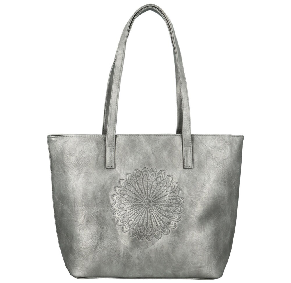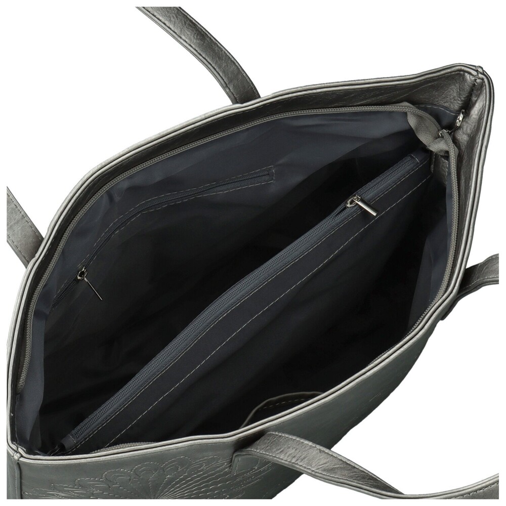 Tato velká kabelka z jemné koženky je ztělesněním jednoduché elegance s dotekem originality. Přední stranu zdobí nádherné vyšívané květinové motivy, které působí plasticky a dodávají kabelce jedinečný, ženský charakter. Díky dlouhým uchům ji můžete pohodlně nosit přes rameno i v ruce. Hlavní kapsa na zip ukrývá prostorný interiér se středovou zipovou kapsou, která dělí prostor na dvě části, a menší kapsičky v podšívce pro přehledné uspořádání všech drobností. Stříbrné kování podtrhuje její moderní vzhled a dokonale ladí s decentní barvou kabelky. Stylová, praktická a s nádechem originality. Objednejte ještě dnes a vyzkoušejte, vrátit ji můžete až do 30 dnů!
