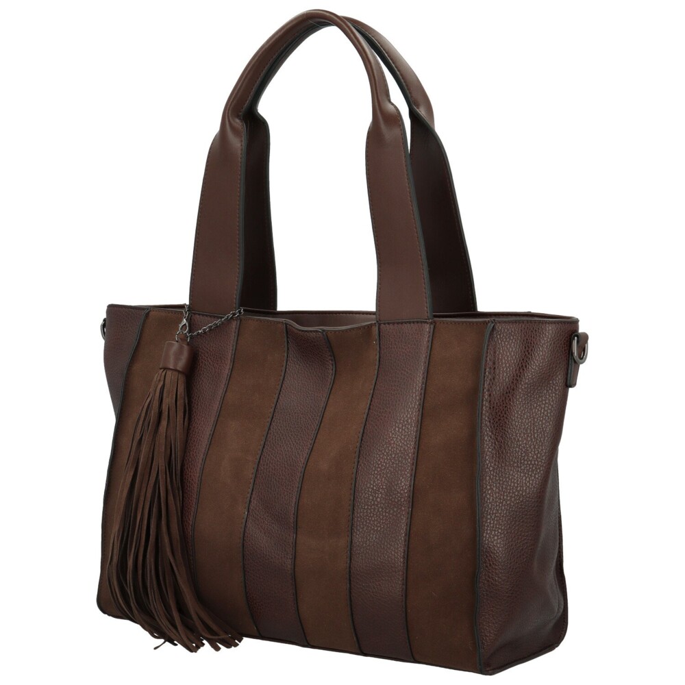 Stylová dámská kabelka z koženky, která spojuje eleganci s praktickým využitím. Přední strana je řešena designově, zdobí ji svislé pruhy ve dvou odstínech, které působí svěže a originálně. Na uchu visí výrazný střapec, jenž dodává kabelce ležérní nádech. Pevné uši jsou navržené tak, aby kabelka pohodlně seděla na rameni. Hlavní kapsa na zip skrývá velkou středovou zipovou kapsu a praktické přihrádky v podšívce, takže vše zůstane přehledně uspořádané. Na zadní straně se nachází zipová kapsa na drobnosti. Pro větší variabilitu můžete využít i dlouhý nastavitelný popruh a nosit kabelku pohodlně přes tělo. Objednejte ještě dnes a vyzkoušejte, vrátit ji můžete až do 30 dnů!