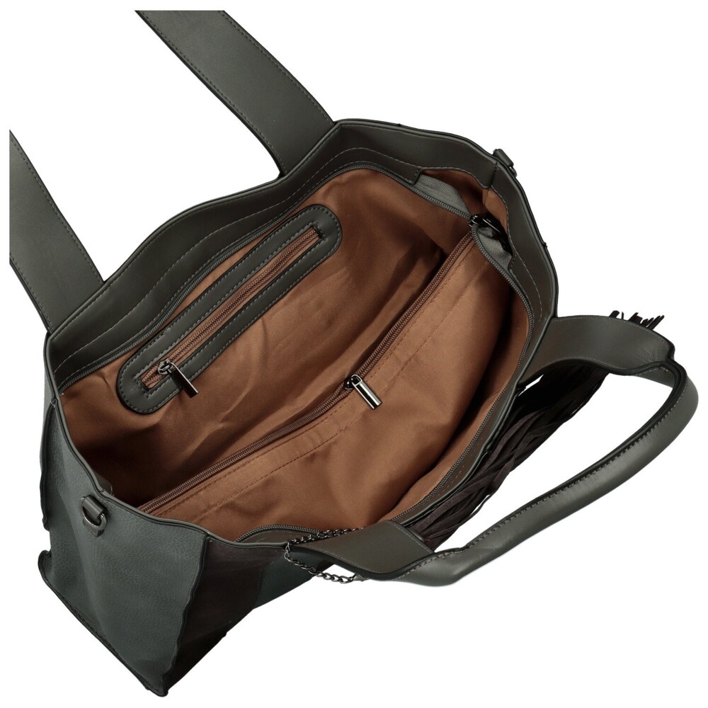 Stylová dámská kabelka z koženky, která spojuje eleganci s praktickým využitím. Přední strana je řešena designově, zdobí ji svislé pruhy ve dvou odstínech, které působí svěže a originálně. Na uchu visí výrazný střapec, jenž dodává kabelce ležérní nádech. Pevné uši jsou navržené tak, aby kabelka pohodlně seděla na rameni. Hlavní kapsa na zip skrývá velkou středovou zipovou kapsu a praktické přihrádky v podšívce, takže vše zůstane přehledně uspořádané. Na zadní straně se nachází zipová kapsa na drobnosti. Pro větší variabilitu můžete využít i dlouhý nastavitelný popruh a nosit kabelku pohodlně přes tělo. Objednejte ještě dnes a vyzkoušejte, vrátit ji můžete až do 30 dnů!