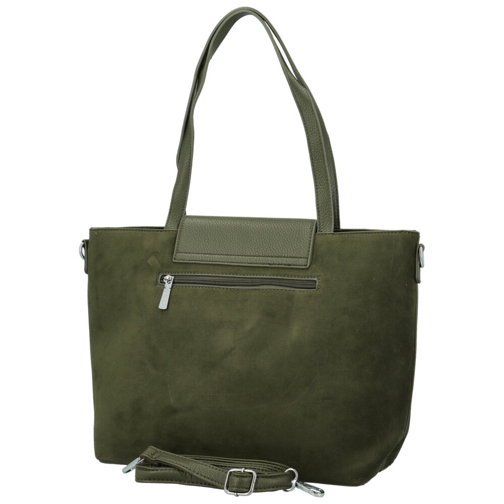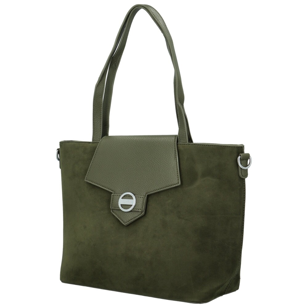 Elegantní dámská kabelka, která spojuje jemnost semišového vzhledu s nadčasovým šarmem hladké koženky. Tělo kabelky působí měkce a sametově, zatímco výrazná klopa z hladké koženky s ozdobným kovovým logem dodává celku moderní a propracovaný vzhled. Po jejím otevření se ukrývá hlavní kapsa na zip, v níž najdete praktické kapsičky v podšívce i středovou zipovou kapsu pro lepší uspořádání věcí. Na zadní straně nechybí samostatná zipová kapsa pro drobnosti, které chcete mít po ruce. Kabelku můžete nosit v ruce i přes rameno díky dlouhým uchům, nebo ji doplnit o odnímatelný dlouhý popruh. Stříbrné kování krásně ladí s teplým odstínem materiálu a podtrhuje její sofistikovaný styl. Objednejte ještě dnes a vyzkoušejte, vrátit ji můžete až do 30 dnů!