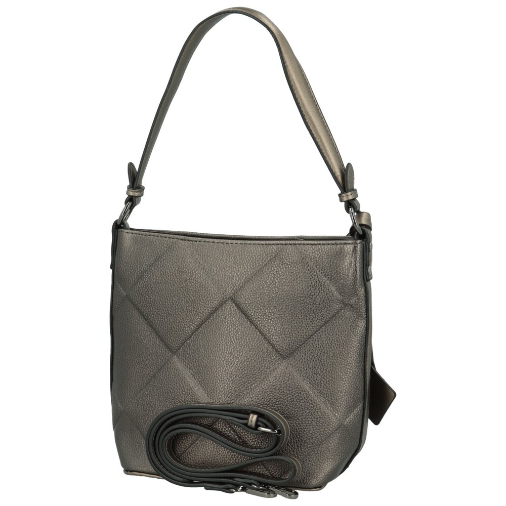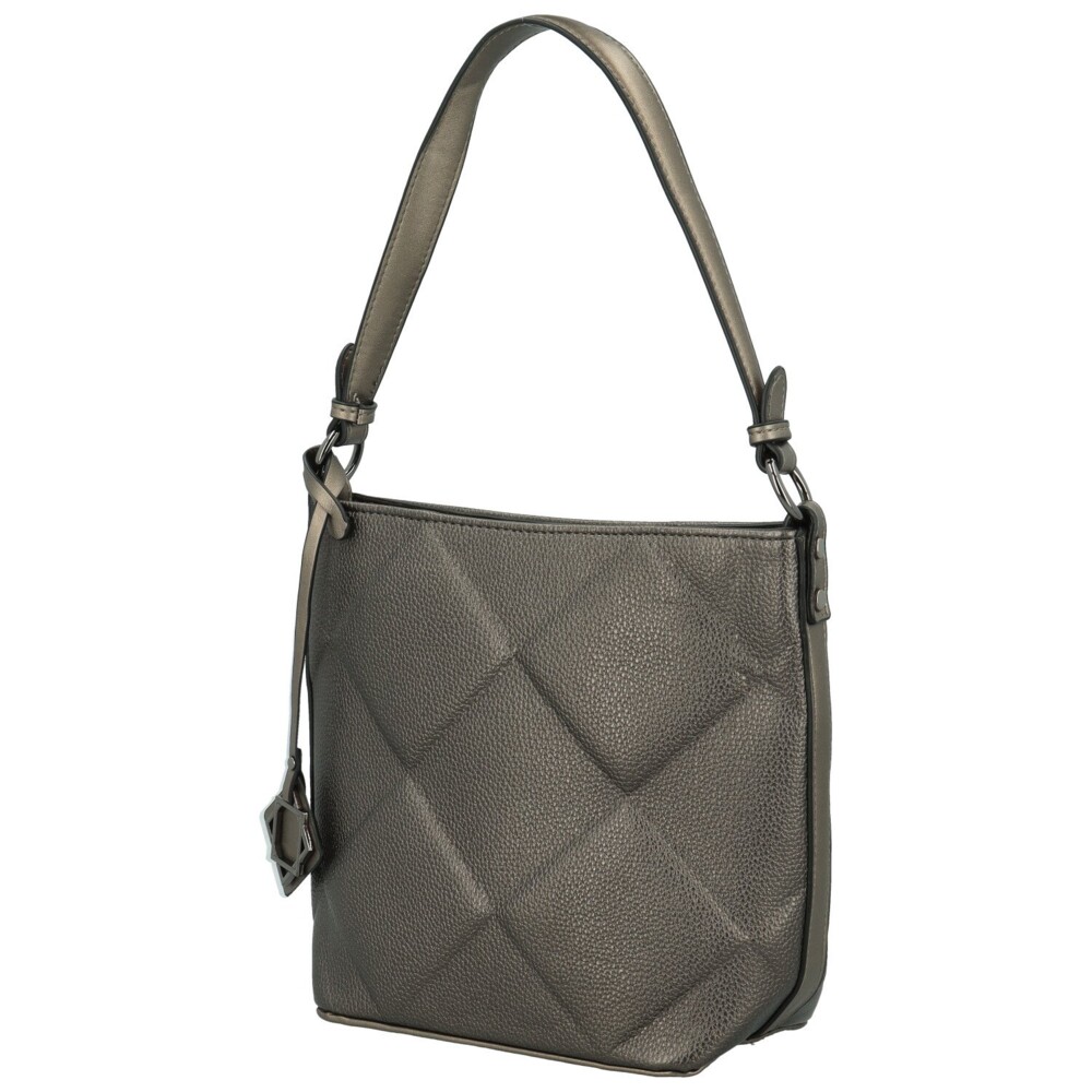Tato dámská kabelka z měkké, ale pevné koženky zaujme svým elegantním tvarem a moderním zpracováním. Přední i zadní část zdobí decentní geometrický motiv v podobě jemně vytlačených čtverců, který kabelce dodává strukturu a osobitost. U jednoho z uch je umístěn ozdobný přívěsek v designovém tvaru, jenž celý model příjemně oživuje. Do hlavní kapsy uzavíratelné na zip se snadno vejde vše potřebné. Její vnitřní prostor je promyšleně členěn, najdete zde kapsičky v podšívce i praktickou středovou zipovou kapsu. Kabelka má pohodlné ucho pro nošení na rameni a zároveň odnímatelný, nastavitelný popruh, který umožňuje nosit ji i jako crossbody. Stříbrné kování podtrhuje moderní vzhled a dodává kabelce jemný nádech luxusu, díky čemuž se stává skvělým doplňkem pro všední dny i elegantní příležitosti. Objednejte ještě dnes a vyzkoušejte, vrátit ji můžete až do 30 dnů!