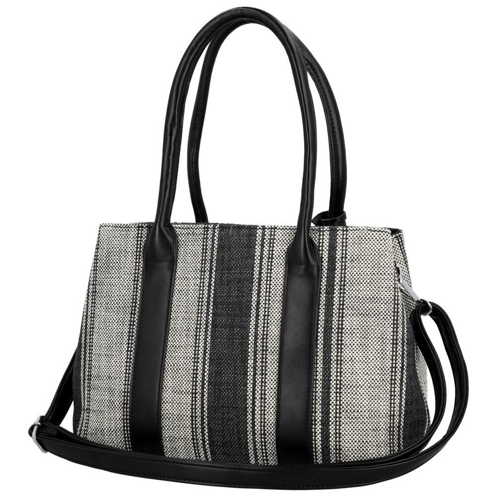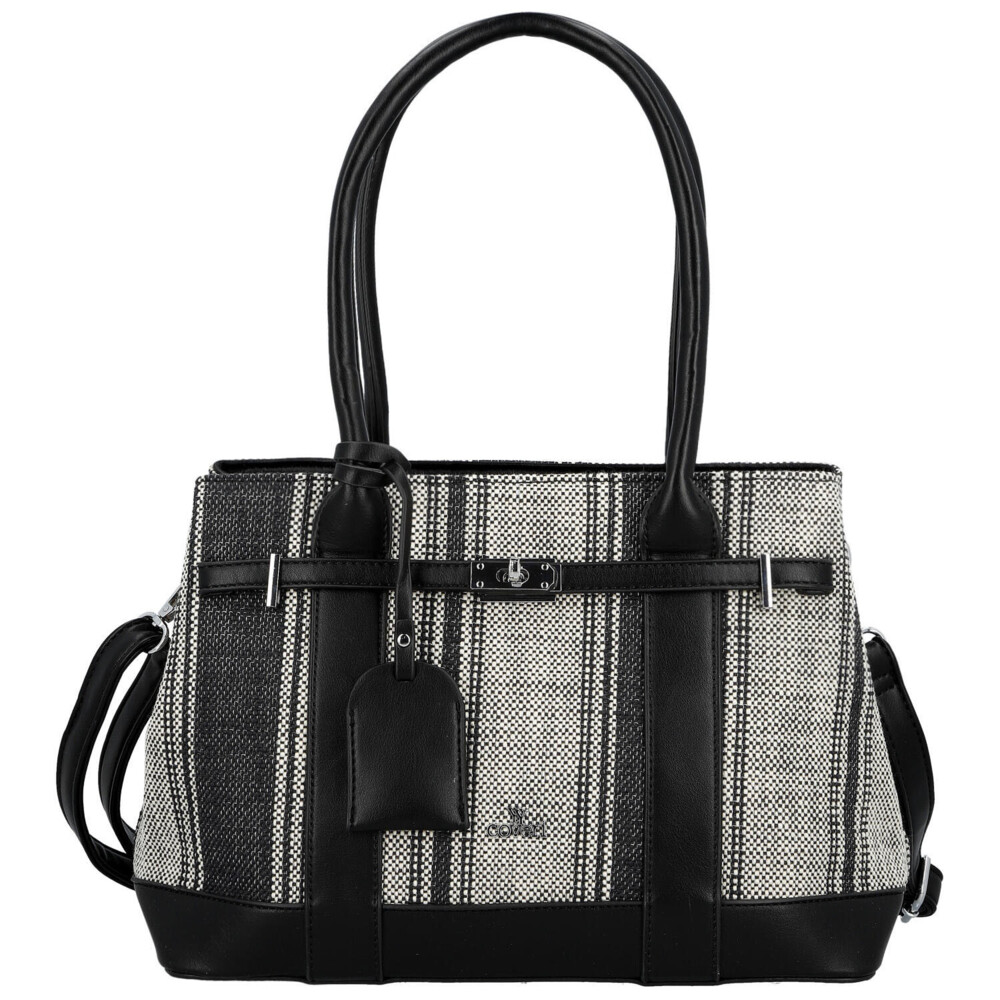 Elegantní dámská kabelka, od značky Coveri, v jemném černém provedení kombinuje moderní design s městskou inspirací, čehož si všimnete hned na přední straně. Vzor textilu s decentním proužkem dodává syntetické kabelce svěží a lehký vzhled, ideální pro jarní a letní sezónu. Pevnější zakulacené uši umožňují pohodlné nošení na předloktí, zatímco odnímatelný a nastavitelný popruh nabízí možnost nošení přes rameno. Kabelka disponuje dostatečně prostorným interiérem pro každodenní potřeby, dva prostory oddělené kapsičkou na zip, a díky hlavnímu zapínání na zip zůstanou vaše věci bezpečně uložené. Stylové detaily, jako jsou kovové prvky a ozdobný pásek, podtrhují elegantní charakter tohoto modelu. Perfektní volba pro ženy, které hledají spojení praktičnosti a nadčasového stylu. Celkově je kabelka pevnější, dobře drží tvar a bonusem je přívěsek na uchu kabelky. Tak objednejte ještě dnes a vyzkoušejte, vrátit ji můžete do 30 dnů.