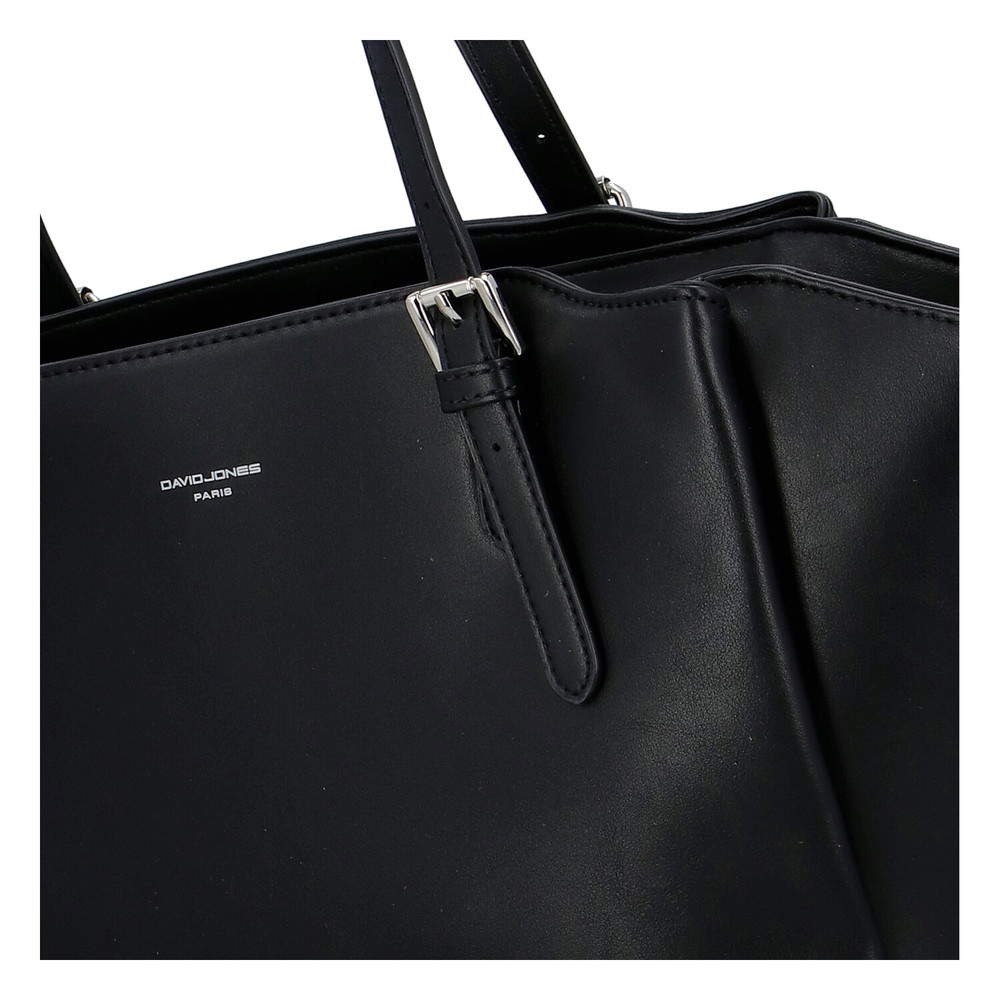 Pokud hledáte nový jarní či letní kousek do svého šatníku, vybírat můžete mezi kvalitními módními kabelkami přes rameno značky David Jones. Prostor Vám u této velké černé klasiky rozhodně chybět nebude. Celkově je kabelka měkká, má lomené pevnější dno, na spodní straně jsou kovové cvočky. Doplní Váš outfit ve městě, na nákupech, ale i v práci. Neváhejte a objednejte si úžasnou kabelku! Vrátit ji můžete až za 30 dnů! Kabelka Vám opravdu nabídne velký prostor, včetně tří velkých kapes, dvě jsou z přední a zadní strany kabelky, otevírají se magnetickými cvočky. Hlavní kapsa se rozepíná zipem, uvnitř jsou dvě volné kapsičky na telefon a make-up, a kapsička se zipem na cennosti. Nechybí zde ani kapsička se zipem na zadní straně kabelky.