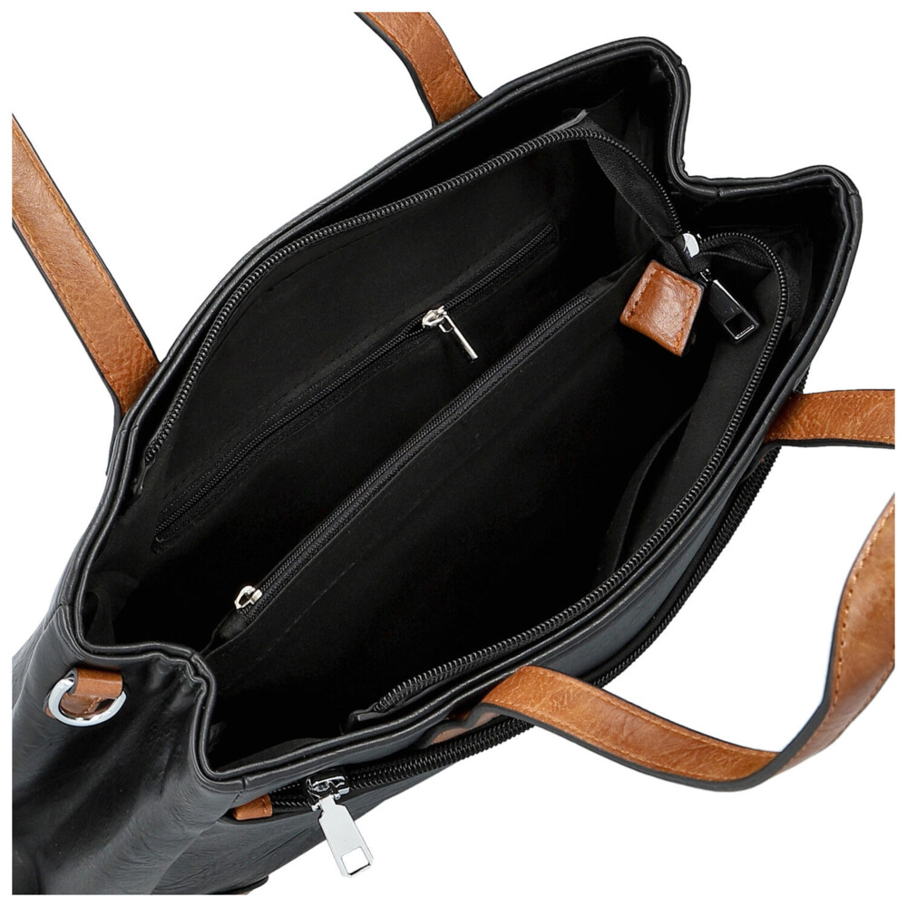 Pohodlná dámská kabelka přes rameno, značky Firenze, v černé barvě s hnědými detaily. Top kousek do města i na cesty do práce. Uložíte si zde všechny osobní věci a navíc budete mít vše přehledně, protože kabelka pod hlavní kapsou se zipem nabízí dva hlavní prostory, které jsou od sebe odděleny přepážkou ve formě kapsy se zipem. Chybět vám nebudou ani kapsičky na telefon, kosmetiku nebo drobnosti. Měkká kabelka s dlouhým uchem je elegantní a vkusná. Objednejte ještě dnes a vyzkoušejte, vrátit ji můžete až za 30 dnů!