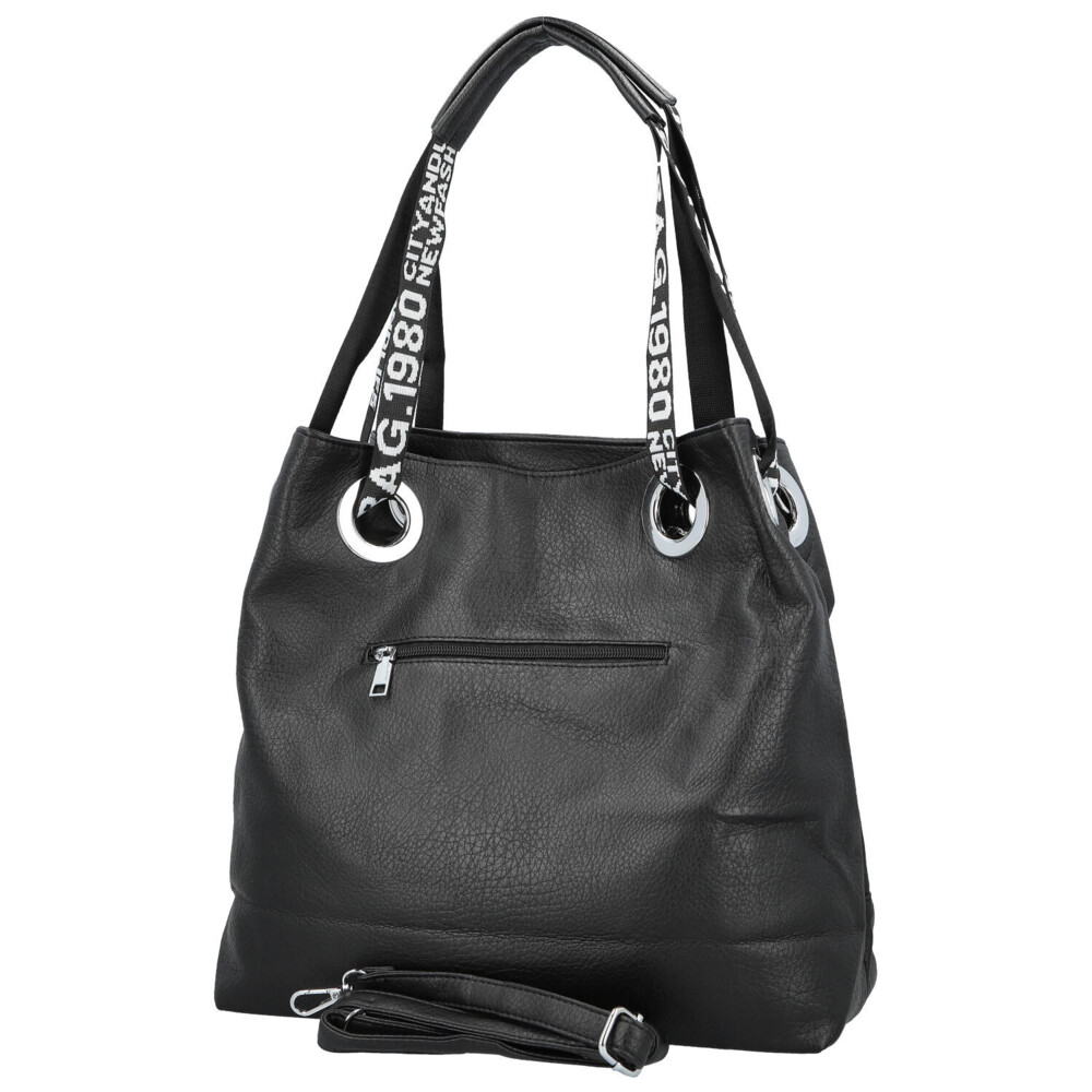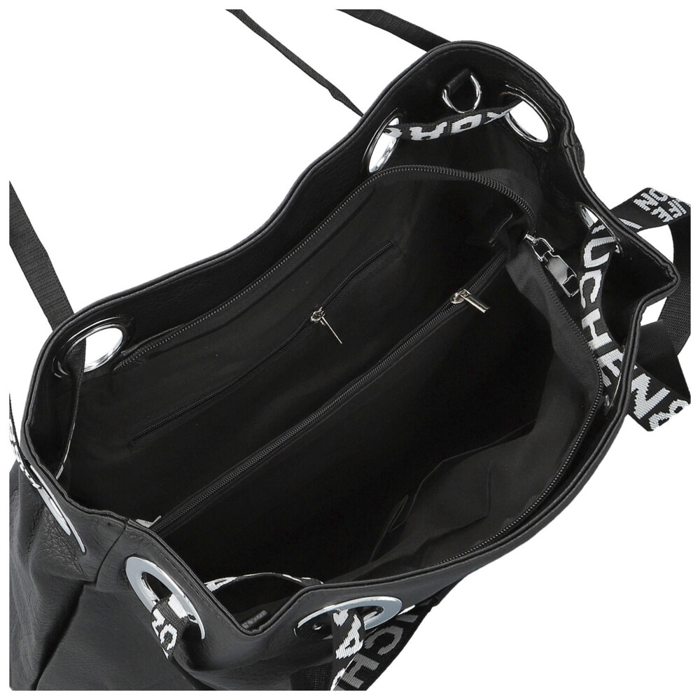 Středně velká dámská shopper kabelka v moderním designu s hlavní kapsou na zip. Objednejte ještě dnes a vyzkoušejte, vrátit ji můžete až za 30 dnů! Kabelka není jen doplněk. Je to váš každodenní společník, který vás doprovází na cestách, v práci i při setkáních s přáteli. Vyberte si model, který vystihne vaši osobnost – jemný, výrazný, elegantní a zároveň ležérní. Černá kabelka přes rameno Firenze. Nabídne dostatečný prostor na veškeré osobní věci i dálší potřeby jako jsou knihy, diář, notebook, šálu, občerstvení. Dlouhé uši jsou z polyesteru a prostřední části jsou polstrované syntetickou kůží, bude se vám tak nosit pohodlně v ruce i přes rameno. Vnitřní část je rozdělena přihrádkou se zipem. Samozřejmostí jsou malé kapsičky na kosmetiku, telefon a další drobnosti.