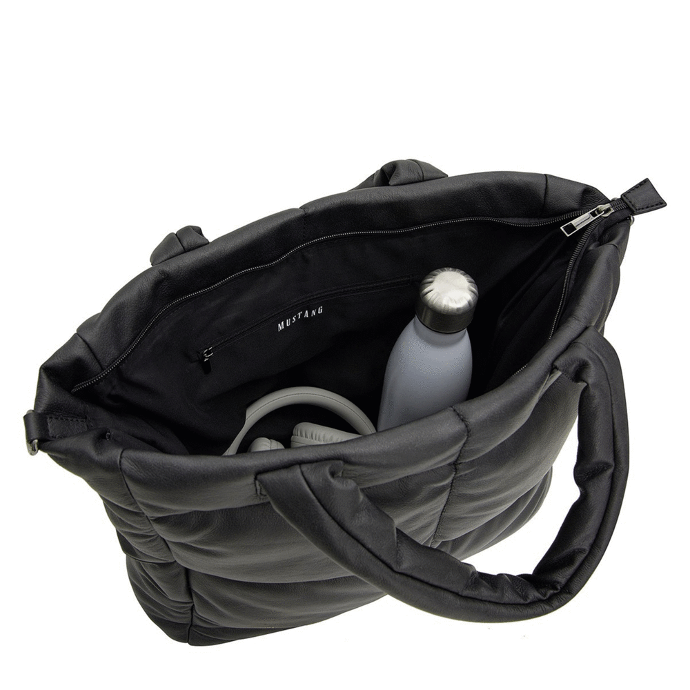 Objednejte ještě dnes a vyzkoušejte, vrátit ji můžete až za 30 dnů! Německá značka Mustang přichází na trh s kvalitní, prošívanou, moderní, černou kabelkou, kterou lze nosit přes rameno, crossbody nebo jen tak v ruce na předloktí. Je to středně velká, lehká, prostorná kráska, která doplní váš outfit ve městě, na cestě do práce i na procházce parkem. Hlavní prostor na zip ukrývá klasické přihrádky a kapsičky na drobnosti a cennosti. Logo značky je originálně zasazeno na boku kabelky. Přivítejte jaro s novým módním doplňkem, který je opravdu originální.