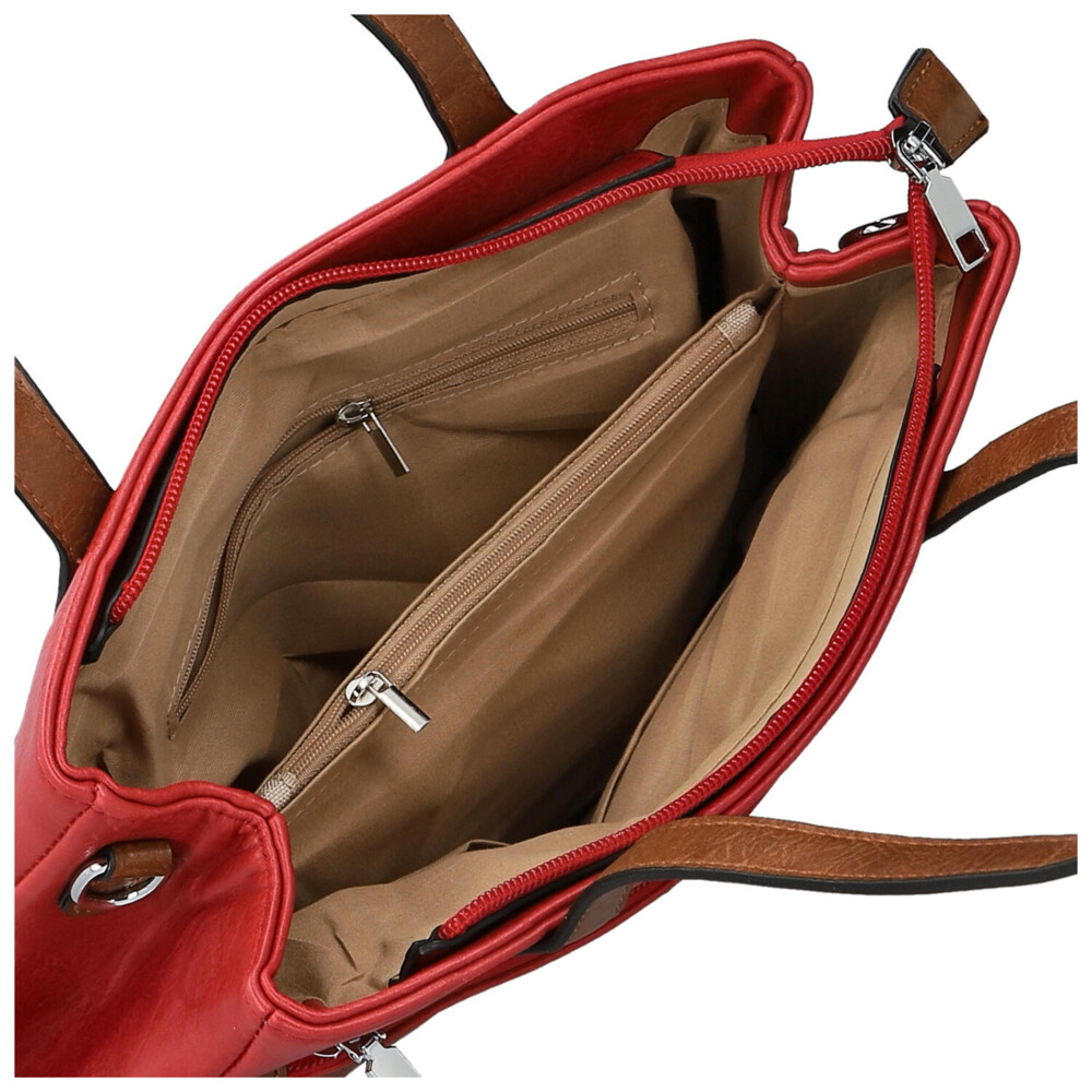 Pohodlná dámská kabelka přes rameno, značky Firenze, v červené barvě s hnědými detaily. Top kousek do města i na cesty do práce. Uložíte si zde všechny osobní věci a navíc budete mít vše přehledně, protože kabelka pod hlavní kapsou se zipem nabízí dva hlavní prostory, které jsou od sebe odděleny přepážkou ve formě kapsy se zipem. Chybět vám nebudou ani kapsičky na telefon, kosmetiku nebo drobnosti. Měkká kabelka s dlouhým uchem je elegantní a vkusná. Objednejte ještě dnes a vyzkoušejte, vrátit ji můžete až za 30 dnů!