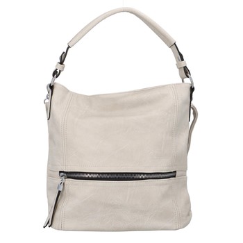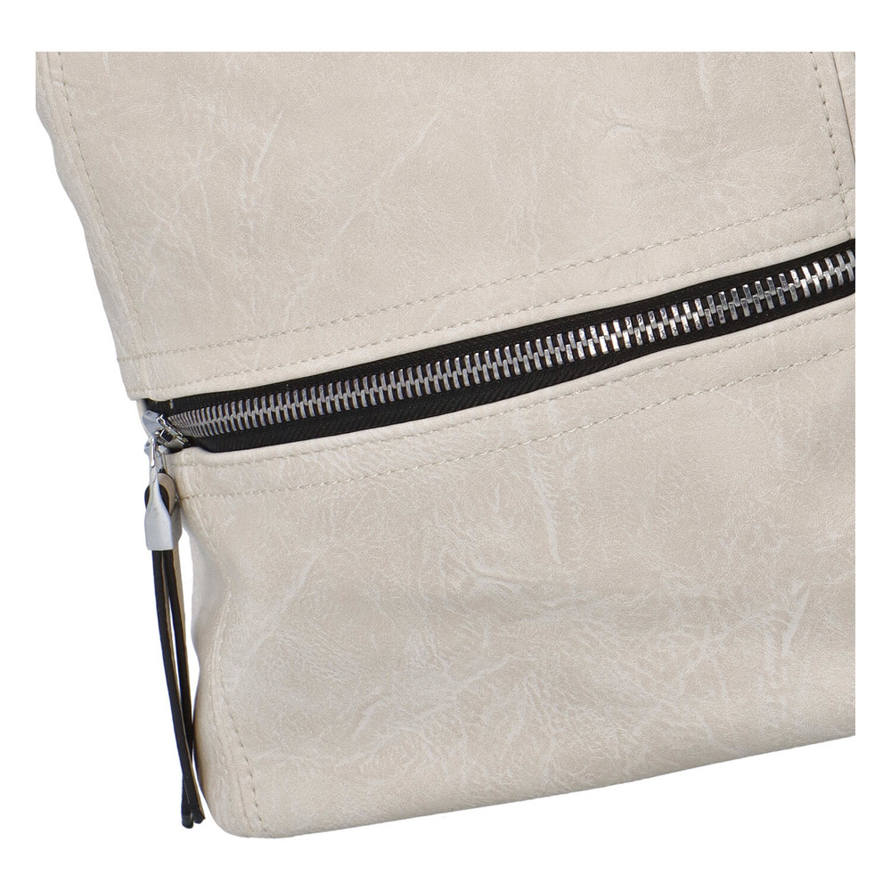 Jednoduchá kabelka přes rameno značky ROMINA & CO BAGS. Objednejte ještě dnes a vyzkoušejte, vrátit ji můžete až za 30 dnů! Praktický, elegantní kousek, který můžete nosit za ucho nebo i s popruhem. Kabelka je větších rozměrů, uložit si zde můžete různé věci, včetně dokumentů, které potřebujete například do práce. Ideální kabelka na nákupy do města nebo Vám poslouží i při posezení s přáteli. Krémově bílá kabelka zaujme lehce prošívanou přední stranou, na které najdete vodorovnou kapsu s robustnějším zipem, ideální pro menší věci, které je třeba mít po ruce. Hlavní kapsa se otevírá zipem, vnitřní prostor se dělí na dva a to látkovou příčkou ve formě kapsy na zip. Najdete zde také volné kapsičky na telefon a drobnosti a kapsičku se zipem na cennosti. Chybět Vám nebude ani kapsa na zip na zadní straně kabelky.