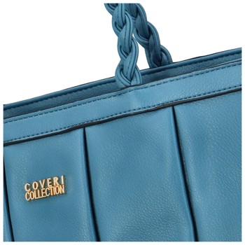 Trendy, velká, syntetická, měkká kabelka od značky Coveri World. Kabelka přes rameno má modrou barvu a lze ji nosit přes rameno i s popruhem. Uši kabelky jsou spletené. Přední strana kabelky je originální z překládané koženky. Hlavní kapsa kabelky se otevírá zipem, vnitřní prostor je rozdělen látkovou kapsou se zipem na dva. Dále Vám kabelka nabídne dvě menší volné kapsičky na telefon a make-up a zadní kapsičku se zipem na drobnosti.