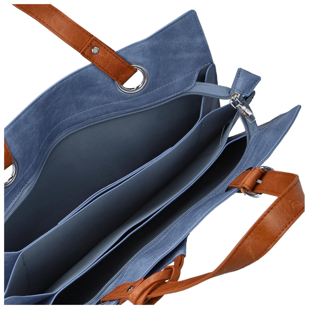 Objednejte ještě dnes a vyzkoušejte, vrátit ji můžete až za 30 dnů! Moderní větší kabelka přes rameno, od značky Firenze, se stane skvělým jarním doplňkem vašeho outfitu. Modrá taška do města nebo do práce. Obdélníková kabelka s hlavní kapsou na zip. Vnitřní prostor pro osobní věci je rozdělen přepážkami a vznikají tak tři volné kapsy. Dlouhé uši kabelky disponují nastavitelnou délkou a bonusem je přívěsek ve fromě malé kapsičky se zipem.