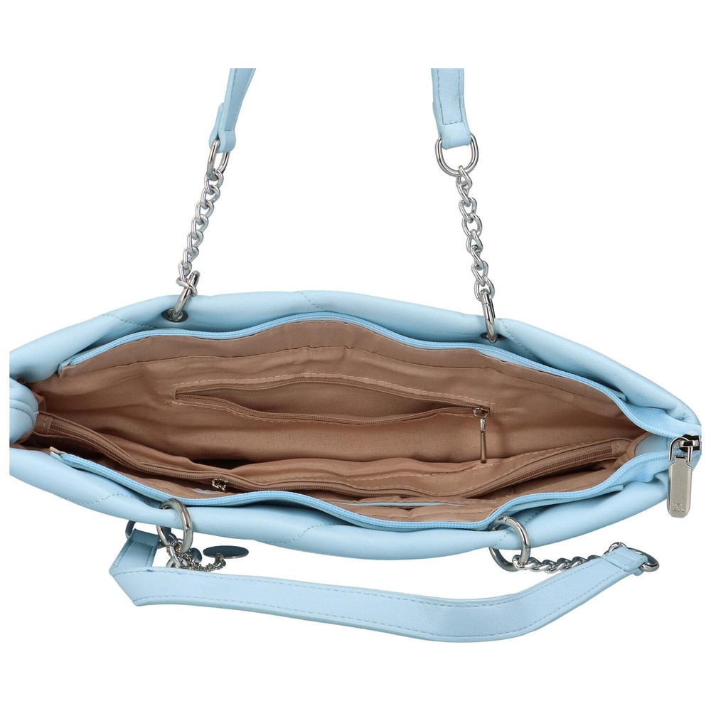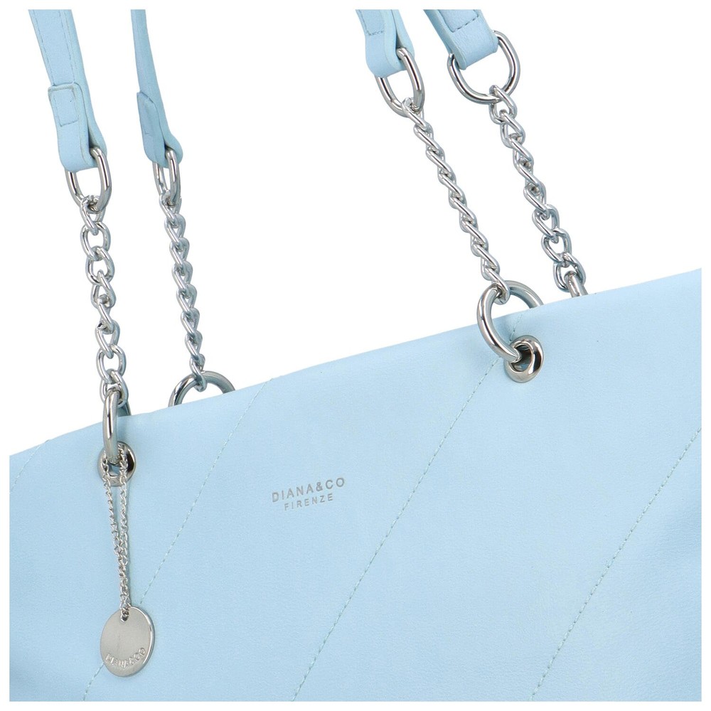 Originální městská novinka od oblíbené značky DIANA & CO. Velká nebesky modrá kabelka pro ženy. Objednejte ještě dnes a vyzkoušejte, vrátit ji můžete až za 30 dnů! Rozhodně Vás zaujme šikmě prošívaná přední strana kabelky. Dlouhé uši kabelky jsou z části z kovových kroužků. Bonusem je malý přívěsek s logem značky. Kabelka je měkká. Hlavní kapsa je na zip. Vnitřní prostor je rozdělen látkovou přepážkou v podobě kapsy se zipem. Samozřejmostí jsou volné kapsičky na telefon i make-up a také kapsička se zipem na další drobnosti.