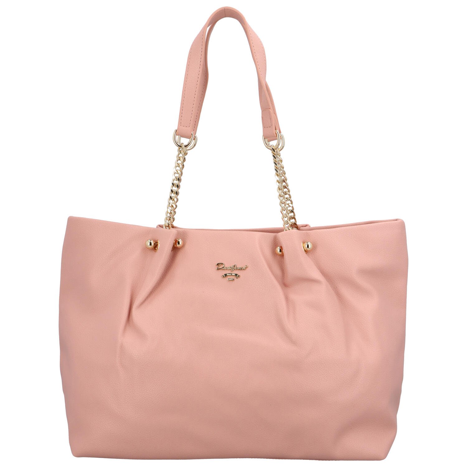 Velká módní kabelka pro ženy od značky David Jones. Prostor Vám u této růžové měkké krásky rozhodně chybět nebude. Doplní Váš outfit ve městě, na nákupech, ale i v práci. Nosit ji lze přes rameno za dlouhé uši, které jsou částečně ze syntetiky a částečně z kovových kroužků. Neváhejte a objednejte si úžasnou kabelku! Vrátit ji můžete až za 30 dnů! Hlavní kapsa se otevírá zipem, prostor kabelky je opravdu velký a chybět Vám zde nebudou klasické volné kapsičky i kapsa se zipem.