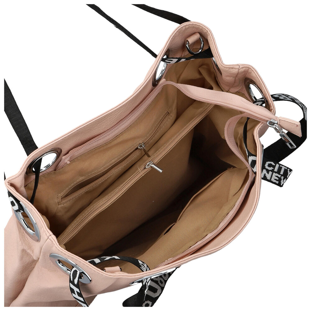 Středně velká dámská shopper kabelka v moderním designu s hlavní kapsou na zip. Objednejte ještě dnes a vyzkoušejte, vrátit ji můžete až za 30 dnů! Kabelka není jen doplněk. Je to váš každodenní společník, který vás doprovází na cestách, v práci i při setkáních s přáteli. Vyberte si model, který vystihne vaši osobnost – jemný, výrazný, elegantní a zároveň ležérní. Růžová kabelka přes rameno Firenze. Nabídne dostatečný prostor na veškeré osobní věci i dálší potřeby jako jsou knihy, diář, notebook, šálu, občerstvení. Dlouhé uši jsou z polyesteru a prostřední části jsou polstrované syntetickou kůží, bude se vám tak nosit pohodlně v ruce i přes rameno. Vnitřní část je rozdělena přihrádkou se zipem. Samozřejmostí jsou malé kapsičky na kosmetiku, telefon a další drobnosti.