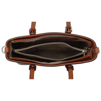 Objednejte ještě dnes a vyzkoušejte, vrátit ji můžete až za 30 dnů! Krásné kabelky s elegantním vzhledem - to je FLORA&CO. Hnědá kabelka přes rameno je středně velká a má vzor saffiano. Jedná se o pevný model s pevným dnem a kovovými cvoky na spodní straně. Otevírá se zipem, vnitřní prostor se dělí na dvě hlavní úložiště a to prostřednictvím kapsy se zipem. Na přední straně je bonusem kovový článek, ke kterému lze připnout jakýkoliv přívěsek.