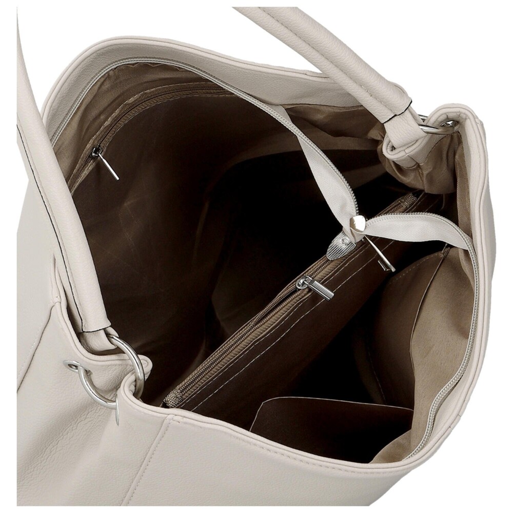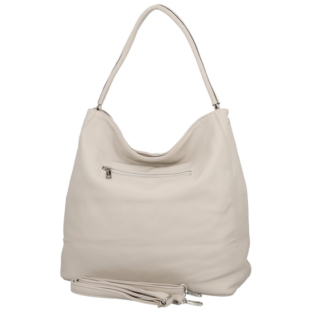 Trendy dámská kabelka z kvalitní syntetické kůže okouzlí čistým designem a nadčasovou elegancí, díky které se stane nepostradatelnou součástí vašeho šatníku. Přední stranu zdobí logo značky, které modelu dodává luxusní a moderní nádech. Hlavní kapsa se zapínáním na zip ukrývá prakticky řešený interiér s kapsičkami v podšívce a středovou zipovou přepážkou. Na zadní straně se nachází další zipová kapsa pro drobnosti. Pevné ucho umožňuje pohodlné nošení na rameni, zatímco dlouhý nastavitelný popruh na připnutí nabízí variabilní styl nošení. Stříbrné kování dokonale podtrhuje elegantní vzhled této kabelky, která skvěle doplní outfit do práce, do města i na volný čas. Objednejte ještě dnes a vyzkoušejte, vrátit ji můžete do 30 dnů!