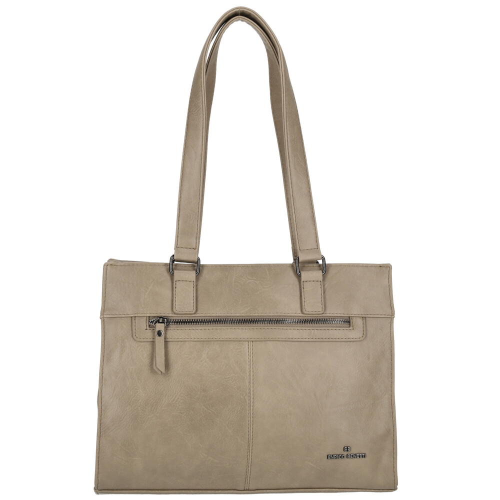 Módní a elegantní syntetická kabelka značky Enrico Benetti skvěle doplní Váš každodenní outfit. Objednejte ještě dnes a vyzkoušejte, vrátit ji můžete až za 30 dnů! Kabelku lze nosit klasicky přes rameno za delší uši, ale také s popruhem. Přední strana je vkusně prošívaná a najdete zde malou kapsičku na zip. Hlavní kapsu rozepnete pomocí zipu. Uvnitř je velký prostor v podobě dvou hlavních volných přihrádek a jedné kapsy se zipem. Samozřejmostí jsou malé kapsičky na drobnosti a cennosti a kapsa se zipem na zadní straně kabelky.