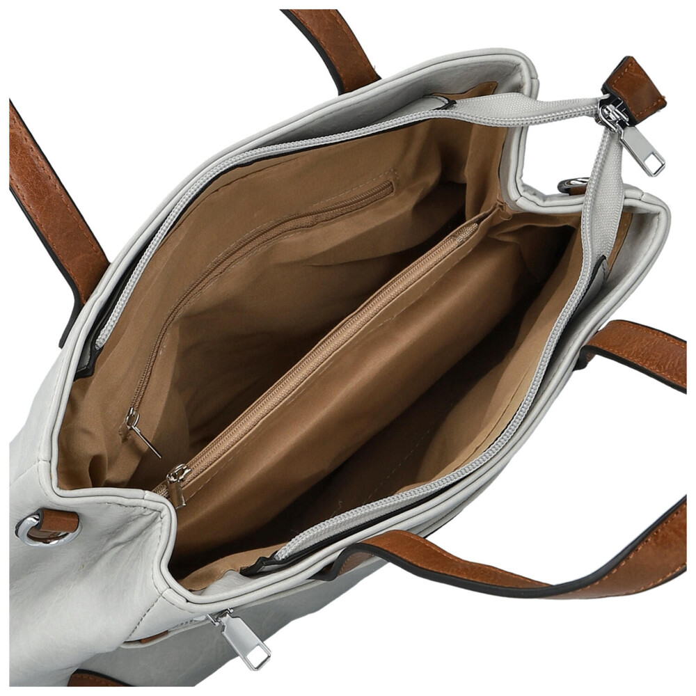 Pohodlná dámská kabelka přes rameno, značky Firenze, ve světle šedé barvě s hnědými detaily. Top kousek do města i na cesty do práce. Uložíte si zde všechny osobní věci a navíc budete mít vše přehledně, protože kabelka pod hlavní kapsou se zipem nabízí dva hlavní prostory, které jsou od sebe odděleny přepážkou ve formě kapsy se zipem. Chybět vám nebudou ani kapsičky na telefon, kosmetiku nebo drobnosti. Měkká kabelka s dlouhým uchem je elegantní a vkusná. Objednejte ještě dnes a vyzkoušejte, vrátit ji můžete až za 30 dnů!