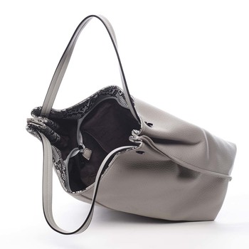 Značka Pierre Cardin Vám přináší elegantní, světle šedou, dámskou kabelku přes rameno. Design této větší kabelky musíte ocenit. Měkká kabelka má pevnější dno, oválný tvar, jemně vrásčitou strukturu a vnitřní lem hlavní kapsy tvoří hadí vzor. Objednejte ještě dnes a vyzkoušejte, vrátit ji můžete až za 30 dnů! Uši jsou ke kabelce připevněny kovovými patenty. Prostor kabelky Vám bude jistě vyhovovat, nechybí zde kapsička na telefon ani kapsička na cennosti. Jednoduchá kabelka, se kterou uděláte dojem i parádu.