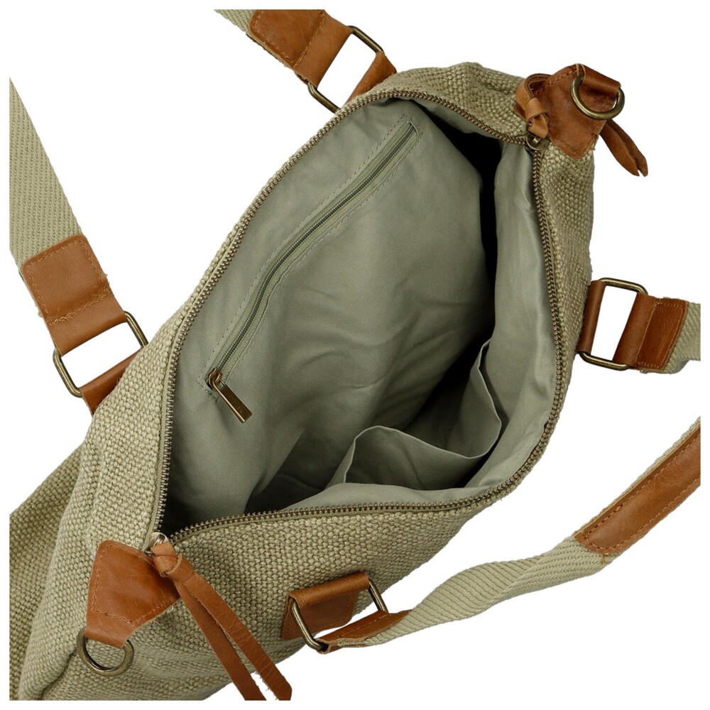 Ležérní styl s nádechem přírodní elegance. Tato textilní kabelka zaujme svou jednoduchostí a harmonickou kombinací barevného materiálu s hnědými detaily, které jí dodávají teplý a nadčasový vzhled. Pevná textilní ucha zajišťují pohodlné nošení v ruce i na rameni, zatímco dlouhý nastavitelný popruh na připnutí umožňuje nosit kabelku i jako crossbody. Hlavní kapsa na zip ukrývá prostorný interiér s praktickými kapsičkami v podšívce. Jemné hnědé prvky krásně doplňují celkový design a dodávají kabelce stylový, přirozený šmrnc. Lehká, praktická a vždy připravená vyrazit s vámi! Objednejte ještě dnes a vyzkoušejte, vrátit ji můžete až za 30 dnů!