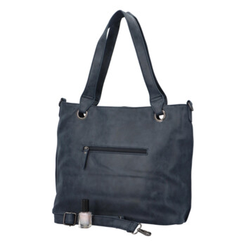 Nové modely, nová kolekce, nový design. Nově Vám můžeme nabídnout větší, velmi praktickou a módní dámskou kabelku přes rameno v tmavě modré barvě. Kabelka je měkká a hladká, velmi příjemný na dotek. Středně dlouhé uši umožňují nosit kabelku přes rameno i v ruce nebo na předloktí, připnout si k ní můžete i popruh a nosit ji tak s popruhem přes rameno. Hlavní kapsa se otevírá zipem, vnitřní prostor je rozdělen látkovou přepážkou ve formě kapsy na zip a najdete zde také polstrovanou kapsičku na tablet (max. 10´). Chybět Vám zde nebudou ani kapsičky na drobnosti či telefon. Samozřejmostí je kapsička se zipem na zadní straně kabelky. Objednejte ještě dnes a vyzkoušejte, vrátit ji můžete až za 30 dnů! Velká, praktická, módní kabelka na každý den.