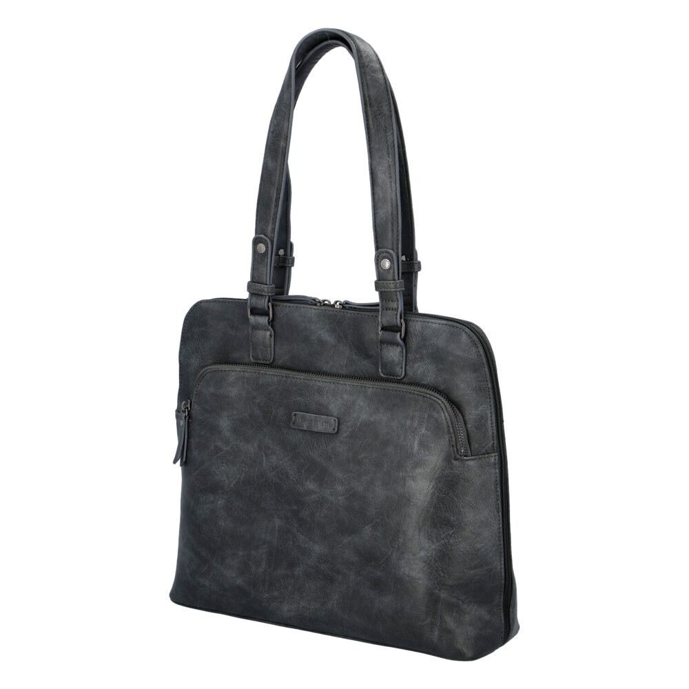 Nové modely, nová kolekce, nový design. Nově Vám můžeme nabídnout středně velkou, velmi praktickou a módní dámskou kabelku přes rameno v tmavě šedé barvě. Kabelka má měkké strany, ale pevné dno. Středně dlouhé uši umožňují nosit kabelku přes rameno i v ruce nebo na předloktí. Hlavní kapsu lze rozepnout téměř po celém obvodu kabelky a to duálním zipem, boky uvnitř jsou tvořeny látkovými membránami, ty zamezí vypadnutí věcí z kabelky. Prostorově se řadí kabelka k větším kouskům. Látkovou přepážkou se zipem se dělí na dvě úložiště. Zároveň Vám poskytne místo na osobní a drobné potřeby jako je telefon. Uložit si zde můžete i větší tablet nebo malý notebook (max. 20x28,5 cm), je zde pro něj vyhrazena polstrovaná přihrádka s látkovým páskem na suchý zip. Na přední straně Vám poslouží velká kapsa se zipem a i na zadní straně kabelky najdete kapsičku na zip. Design kabelky je téměř čtvercový s jemným vzorem vrásek. Objednejte ještě dnes a vyzkoušejte, vrátit ji můžete až za 30 dnů!