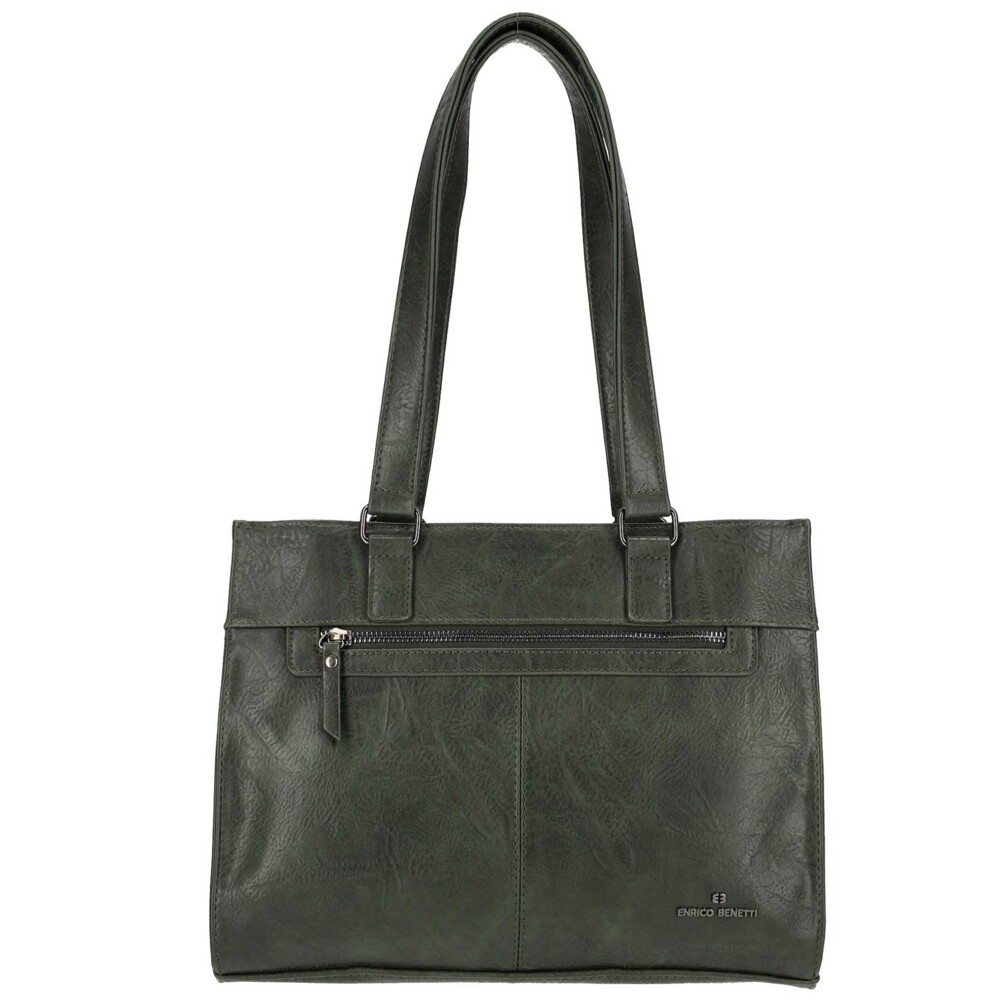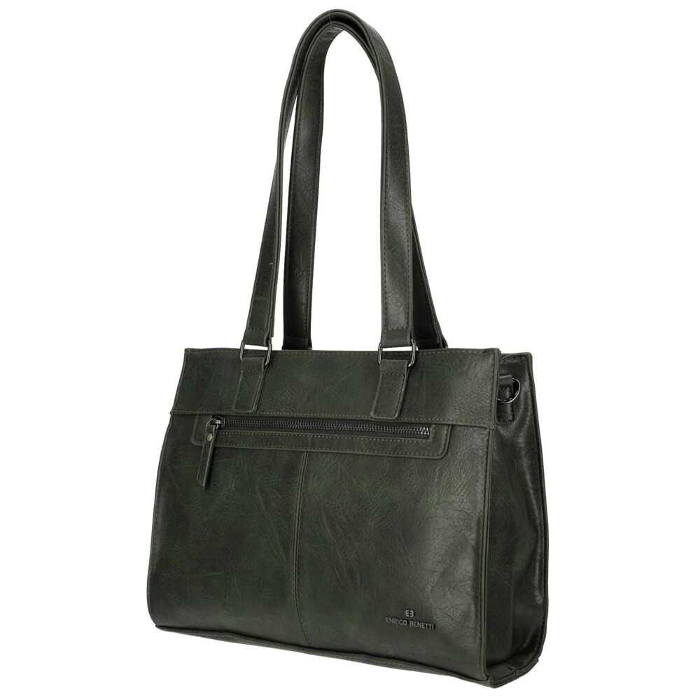 Módní a elegantní syntetická kabelka značky Enrico Benetti skvěle doplní Váš každodenní outfit. Objednejte ještě dnes a vyzkoušejte, vrátit ji můžete až za 30 dnů! Kabelku lze nosit klasicky přes rameno za delší uši, ale také s popruhem. Přední strana je vkusně prošívaná a najdete zde malou kapsičku na zip. Hlavní kapsu rozepnete pomocí zipu. Uvnitř je velký prostor v podobě dvou hlavních volných přihrádek a jedné kapsy se zipem. Samozřejmostí jsou malé kapsičky na drobnosti a cennosti a kapsa se zipem na zadní straně kabelky.