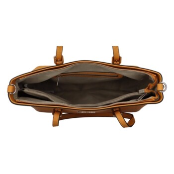 Skliďte od přátel obdiv a chválu. Kupte si elegantní a módní kabelku za nízkou cenu! Objednejte ještě dnes a vyzkoušejte, vrátit ji můžete až za 30 dnů! Tato velká, celkem pevná, kabelka dodá Vašemu outfitu jiskru. Skvěle se hodí ke kostýmku a podpatkům, noste ji tedy na pracovní pohovory, do města na nákupy nebo do společnosti. Líbivá kabelka se vzorem saffiano má tmavě žlutou barvu. Nosit ji lze přes rameno a také disponuje popruhem, pokud by Vám dlouhé uši kabelky nevyhovovaly. Je stabilní, na spodní straně jsou kovové cvočky, tak snadno se Vám tedy nezašpiní. Hlavní kapsa se otevírá zipem, uvnitř najdete prostor rozdělený přepážkou ve formě kapsy se zipem. Vše si sem lze uložit přehledně. Chybět Vám nebudou ani klasické kapsičky, dvě volné a jedna se zipem. Počítat můžete i s kapsou na zadní straně kabelky, ta je na zip. ❦ Elegance ve všech směrech. ❦ Bonusem je kroužková spona u uchycení ucha na přední straně kabelky, například na přívěsek.