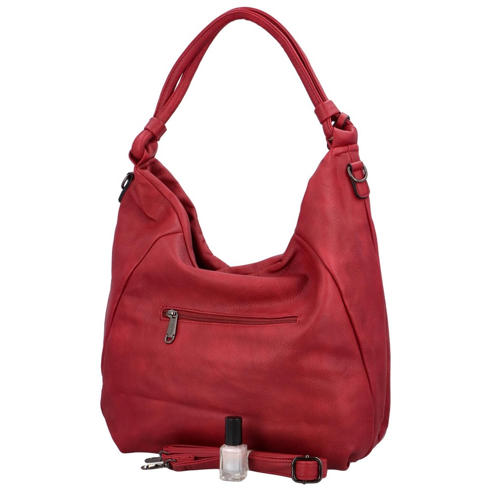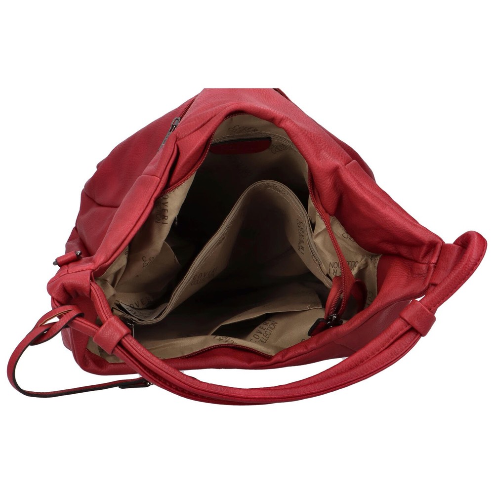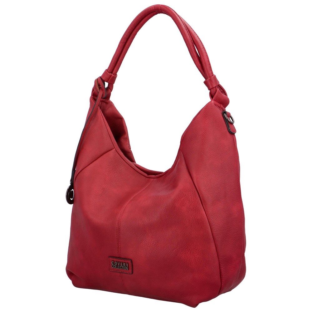Módní syntetická kabelka s odnímatelným popruhem od značky Coveri World. Středně velká kabelka do města nebo na nákupy nabízí klasickou hlavní kapsu s postranními kapsičkami na drobnosti a cennosti a navíc je rozdělena na dvě části a to pomocí látkové kapsy se zipem. Kabelka je měkká a vínová. Součástí je odnímatelný kovový přívěsek.