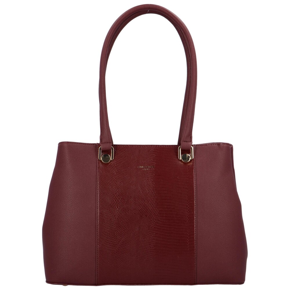 Elegantní kabelka přes rameno, kterou oceníte při cestě do práce, dojem zanechá i na schůzce, nebo pohovoru. Módní vínová barva a luxusní design vytvořili tento nadčasový model. Další povedený doplněk od značky David Jones. Objednejte ještě dnes a vyzkoušejte, vrátit ji můžete až za 30 dnů! Hlavní úložný prostor je všitou kapsou rozdělen na polovinu. Uvnitř máte dále k dispozici zabudovanou kapsu a otevřenou přihrádku. Poslední kapsu najdete na zadní straně kabelky.