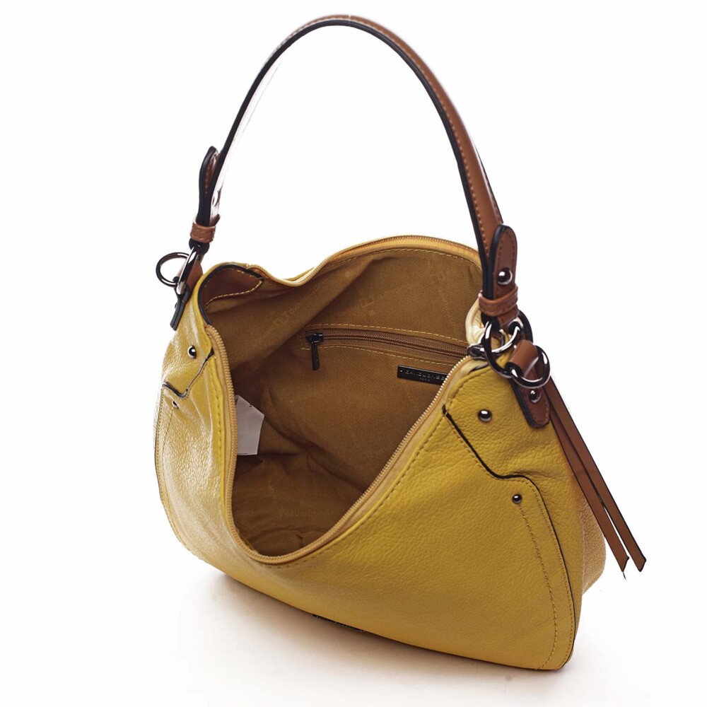 Tato žlutá moderní kabelka David Jones obohatí Váš denní outfit, ať už po cestě do práce, na nákupech nebo ve městě. Kabelka je středních rozměrů, měkká, v zakulaceném designu, využívá se i jako "shopper" taška. Nosit ji můžete přes rameno nebo crossbody. Disponuje totiž uchem i odnímatelným popruhem. Hlavní kapsa se otevírá zipem s pásky, uvnitř najdete střední volnou kapsu na telefon a cennosti a menší kapsičku na zip na drobnosti. Objednejte ještě dnes a vyzkoušejte, vrátit ji můžete až za 30 dnů!