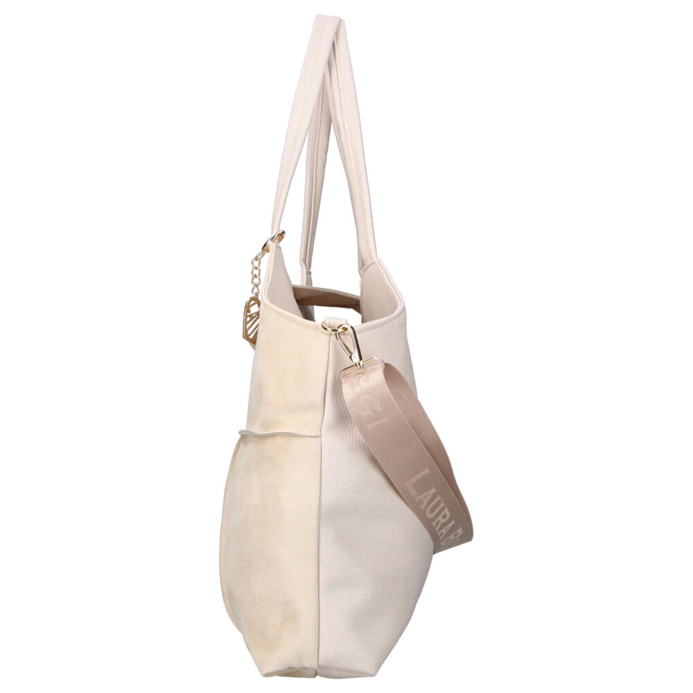 Dámská kožená kabelka přes rameno béžová - Laura Biaggi Sienna
