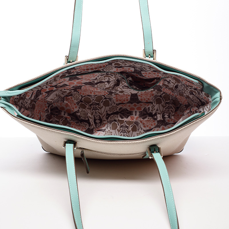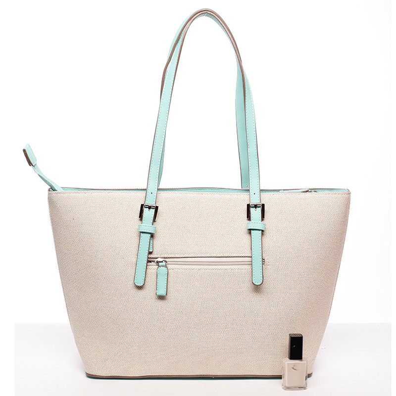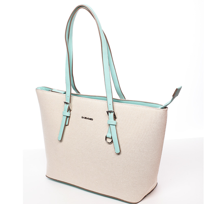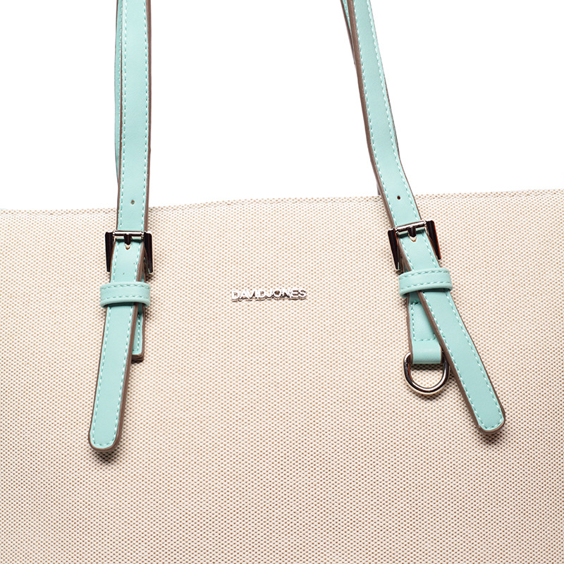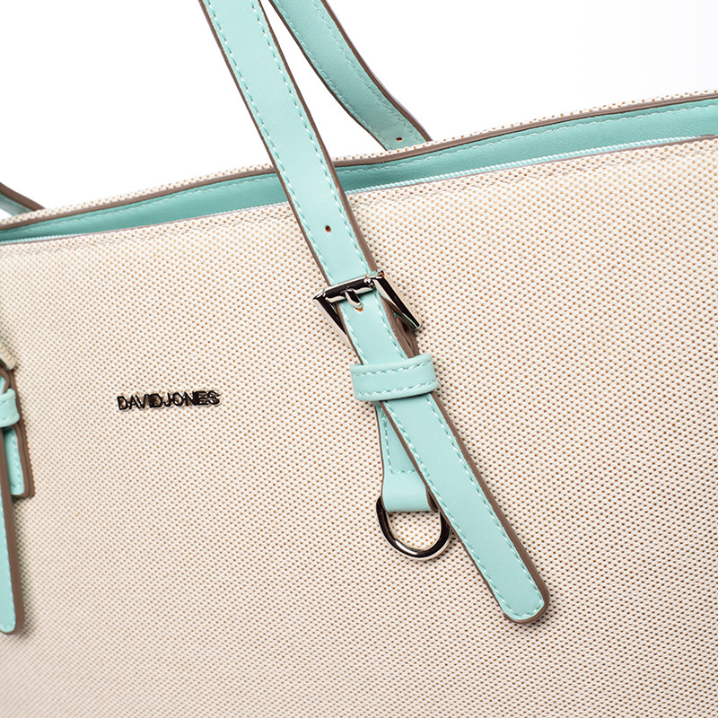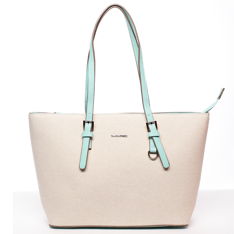 Novinka značky David Jones sezóny 2016/2017! Vraťte se zpět do letních dnů! Přírodní béžová originální lehká kabelka potažená strukturovanou textílií s dlouhými nastavitelnými uchy v mentolové barvě a prostorným vnitřkem. Do kabelky je pohodlný přístup přes dlouhý zip, uvnitř jsou postranní kapsičky. Vrácení nic nestojí a máte na to 30 dnů!