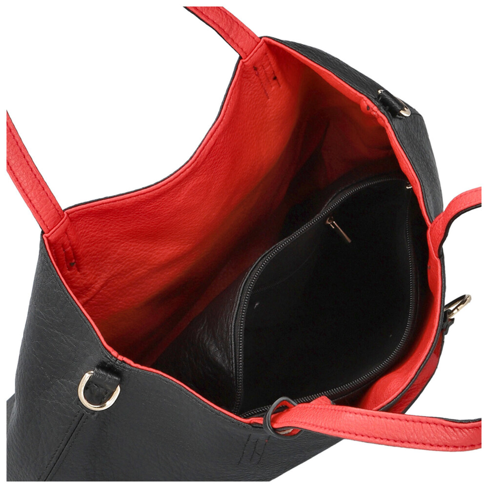 Objevte nadčasovou eleganci inspirovanou Itálií. Dámská kabelka Firenze je ideální volbou pro ženy, které chtějí být stylové a zároveň praktické. Dominantní černá shopper kabelka s červenou protistranou působí luxusně a výrazně. Díky tomu získáváte univerzální doplněk vhodný jak do města, tak do práce či na volný čas a nákupy. Set 2v1 vám umožní variabilní nošení - velká kabelka přes rameno na každodenní nošení a menší crossbody na lehké a rychlé pochůzky. Dlouhé uši pohodlně sedí na rameni a nastavitelný popruh u menší kabelky umožňuje přizpůsobení přesně podle vašich potřeb. Hlavní prostor se sepíná magnetem, malá crossbody se zapíná zipem. Odnímatelný popruh lze připnout k oběma kabelkám. Celkově jsou obě kabelky měkké z lehce vrásčité umělé kůže. Objednejte ještě dnes a vyzkoušejte, vrátit ji můžete až za 30 dnů! Tyto barvy vás budou bavit!