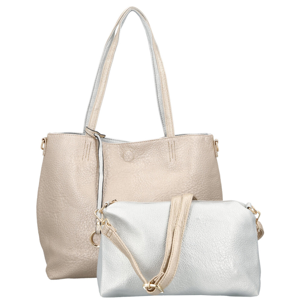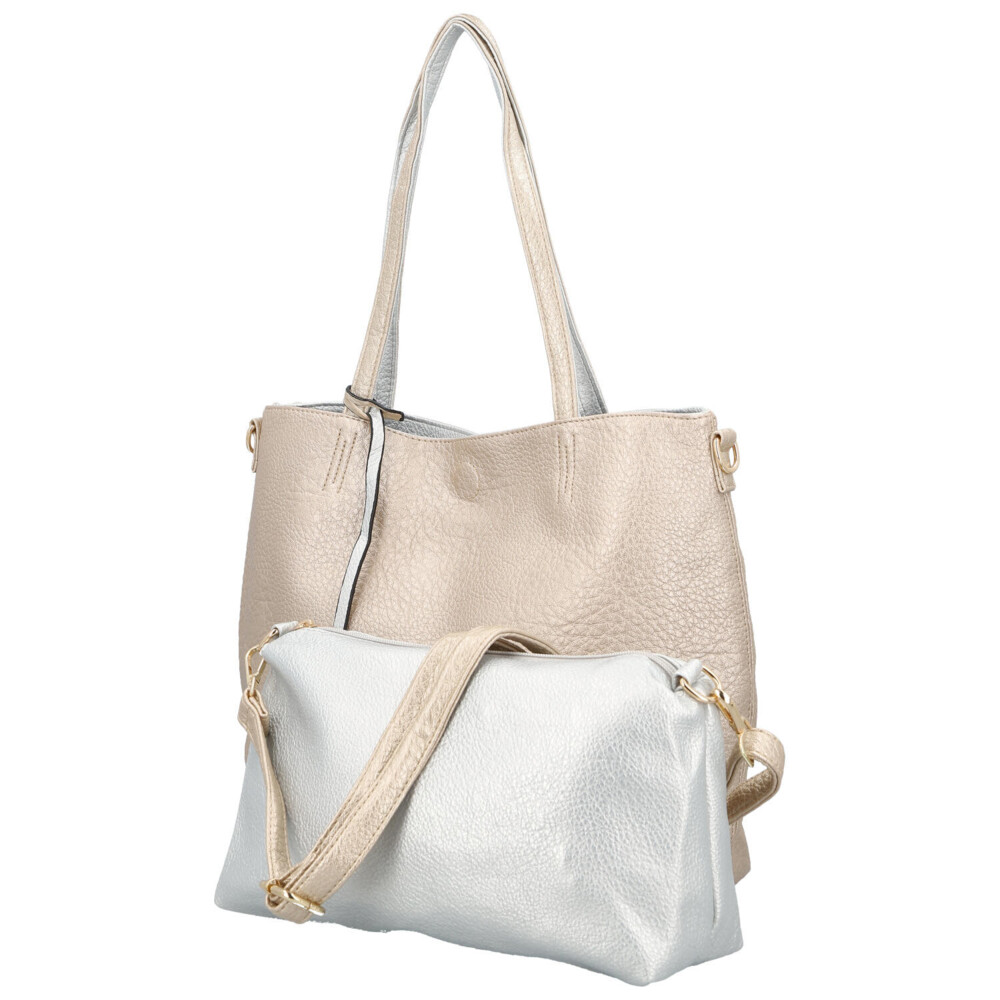 Objevte nadčasovou eleganci inspirovanou Itálií. Dámská kabelka Firenze je ideální volbou pro ženy, které chtějí být stylové a zároveň praktické. Dominantní zlatá shopper kabelka působí luxusně a výrazně, zatímco menší stříbrná kabelka dodává celku svěží kontrast. Díky tomu získáváte univerzální doplněk vhodný jak do města, tak do práce či na volný čas a nákupy. Set 2v1 vám umožní variabilní nošení - velká kabelka přes rameno na každodenní nošení a menší crossbody na lehké a rychlé pochůzky. Dlouhé uši pohodlně sedí na rameni a nastavitelný popruh u menší kabelky umožňuje přizpůsobení přesně podle vašich potřeb. Hlavní prostor se sepíná magnetem, malá crossbody se zapíná zipem. Odnímatelný popruh lze připnout k oběma kabelkám. Celkově jsou obě kabelky měkké z lehce vrásčité umělé kůže. Objednejte ještě dnes a vyzkoušejte, vrátit ji můžete až za 30 dnů! Tyto barvy vás budou bavit!