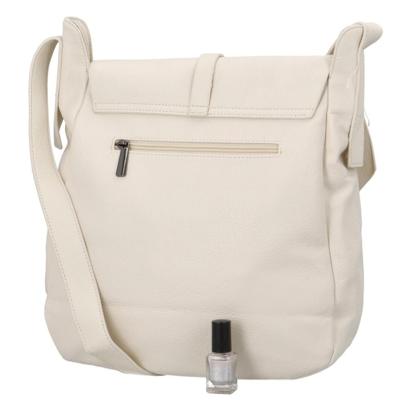 Objednejte ještě dnes a vyzkoušejte, vrátit ji můžete až za 30 dnů! Velmi originální, stylová a módní kabelka přes rameno v béžové barvě. Má jemnou vrásčitou strukturu. Na klopě kabelky je část, která připomíná broušenou kůži. Celkově je kabelka měkká, uvnitř Vám nabídne dvě volné kapsičky a kapsičku se zipem. Další kapsičku se zipem najdete na zadní straně kabelky.