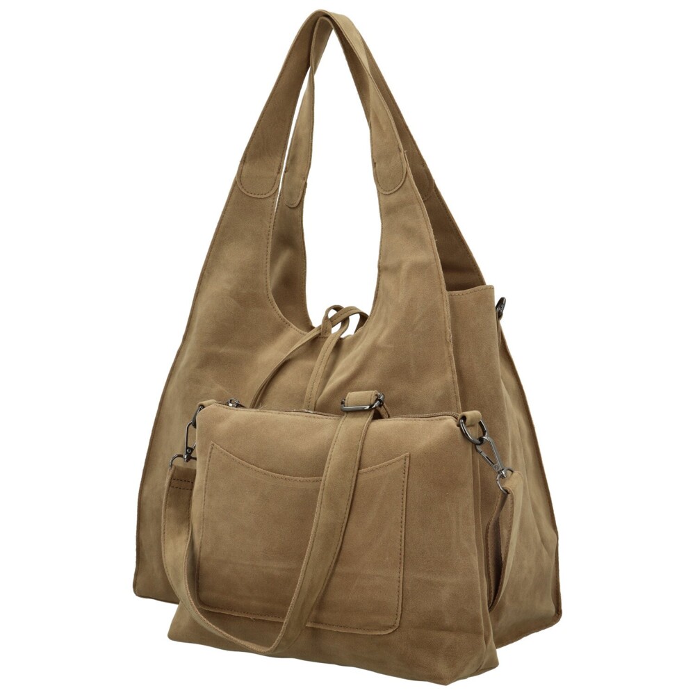 Duo, které si zamilujete pro jeho styl i funkčnost! Tento set z jemné koženky s efektem semiše působí elegantně, měkce a zároveň moderně. Velká kabelka s pevnými uchy má promyšlené zavírání na zip i šňůrky, díky kterému si uchová svůj tvar a přitom působí ležérně. Menší crossbody ve stejném designu je dokonalým doplňkem, můžete ji nosit samostatně, nebo vložit do větší jako praktický organizér. Nabízí zipovou kapsu v přední části. Dlouhý popruh snadno připnete k oběma taškám podle potřeby. Stříbrné detaily dodávají setu jemný luxusní akcent. Ideální kombinace pro ženy, které chtějí mít krásu i pořádek vždy po svém boku. Objednejte ještě dnes a vyzkoušejte, vrátit ji můžete až do 30 dnů!
