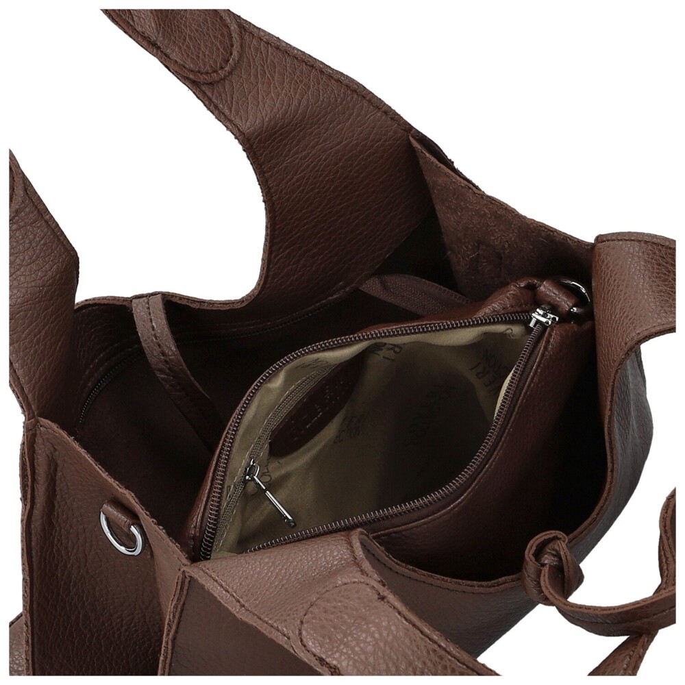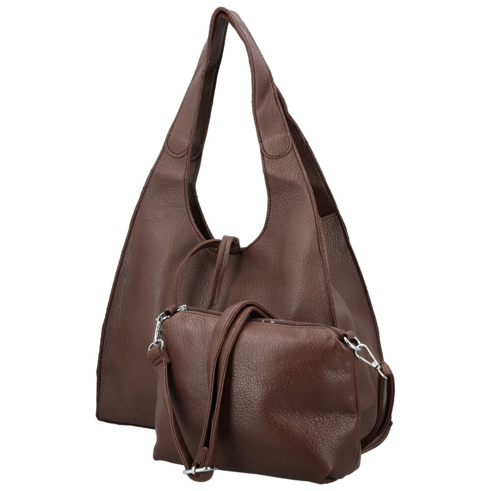 Elegantní set dámských kabelek z koženky nabízí styl i praktičnost v dokonale sladěné dvojici. Větší kabelka s originálním trojúhelníkovým střihem působí moderně a žensky. Má pevná ucha pro pohodlné nošení na rameni a hlavní kapsu na zip, do které se vejde vše potřebné pro váš den. Menší kabelka v setu je skvělým organizérem do větší kabelky, ale díky dlouhému nastavitelnému popruhu ji můžete nosit i samostatně jako crossbody kabelku. Popruh leze odepnout nebo připnout i na větší kabelku, takže s jedním setem získáte hned několik stylů nošení. Celkový dojem podtrhuje jemné stříbrné kování, které dodává luxusní akcent. Praktický a elegantní doplněk, který se přizpůsobí vám i vašemu tempu. Objednejte ještě dnes a vyzkoušejte, vrátit ji můžete až do 30 dnů!