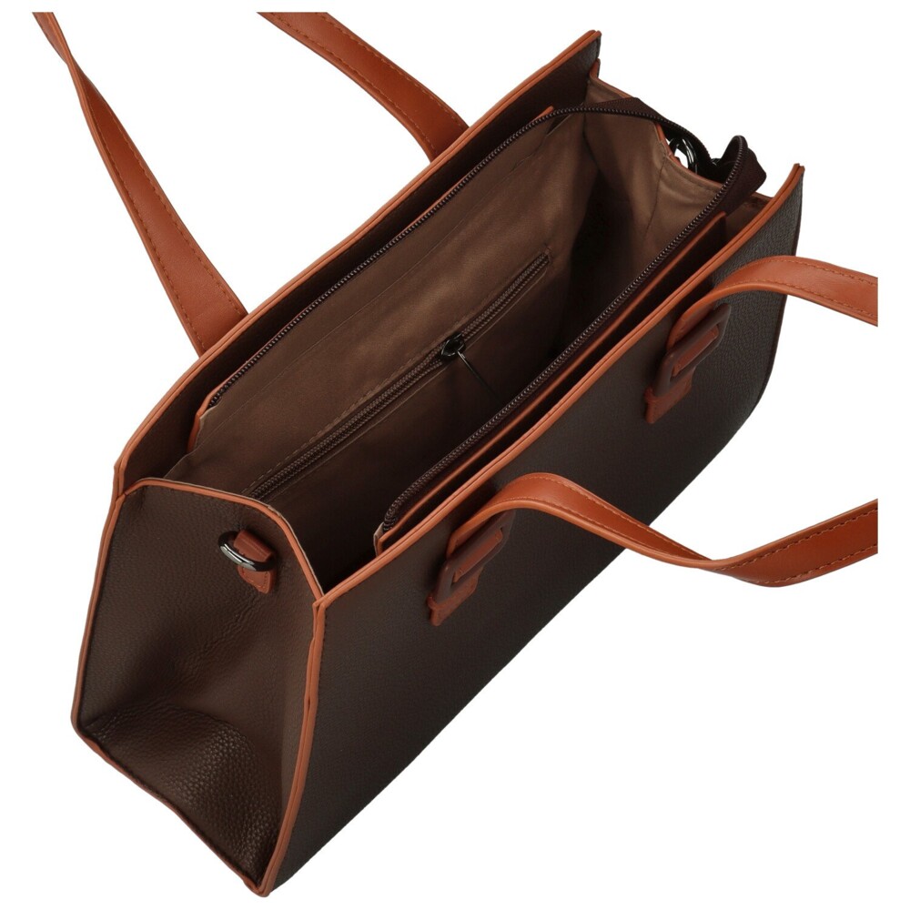 Stylový set tří dámských kabelek v elegantní kombinaci dvou barevných odstínů představuje ideální doplněk pro každodenní i volnočasové aktivity. Každá kabelka v setu má jinou velikost, takže si snadno vyberete podle příležitosti. Velká i střední kabelka má hlavní kapsu na zip a uvnitř kapsičky v podšívce. Na zadní straně nechybí zipová kapsa. Větší taška má delší uši na rameno, menší zase akorát do ruky. Ke kabelkám je i dlouhý popruh na připnutí pro nošení na rameni či do kříže. Stříbrné kování dodává kabelce decentní lesk a elegantní nádech. Malá crossbody kabelka je lehká a využijete ji na cestování, procházky či večerní vycházky. Má hlavní kapsu na zip, přední zipovou kapsičku a dlouhý koženkový popruh. Tento set spojuje praktickou funkčnost a moderní design. Objednejte ještě dnes a vyzkoušejte, vrátit ji můžete až do 30 dnů!