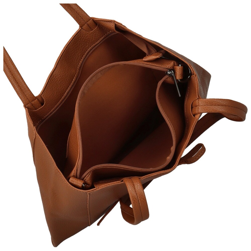 Stylový koženkový set, který potěší milovnice promyšlených detailů i praktického designu. Větší kabelka s dlouhými uchy působí elegantně a zároveň nabízí dostatek prostoru pro vše, co během dne potřebujete. Hlavní kapsa se uzavírá na zip a je ozdobená koženkovými šňůrkami, které dodávají kabelce osobitý šmrnc. Menší crossbody kabelka má vnitřní kapsičky v podšívce a bezpečné zapínání na zip, můžete ji nosit samostatně, nebo ji díky odepínacímu popruhu použít jako organizér do větší tašky. Celý set doplňuje tmavě stříbrné kování, které krásně podtrhuje moderní, elegantní vzhled. Objednejte ještě dnes a vyzkoušejte, vrátit ji můžete až do 30 dnů!