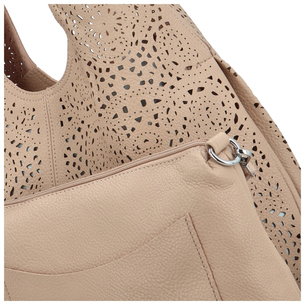 Dvě typově různé kabelky, které se dají využít dohromady i samostatně. Větší kabelka má výrazný děrovaný vzor v podobě ornamentů, který jí dodává lehkost a vzdušnost. Má široká ramínka pro pohodlné nošení přes rameno. Kabelka se dá zapnout menším zipem. Je prostorná a vhodná na každodenní nošení. Menší kabelka je jednoduchá a má dlouhý připínací popruh nastavitelné délky, pro nošení na rameni i do kříže. Dá se uzavřít zipem a uvnitř jsou i menší kapsičky. Lze ji nosit samostatně jako crossbody nebo jako organizér uvnitř větší kabelky. Objednejte ještě dnes a vyzkoušejte, vrátit ji můžete až do 30 dnů!